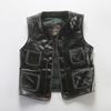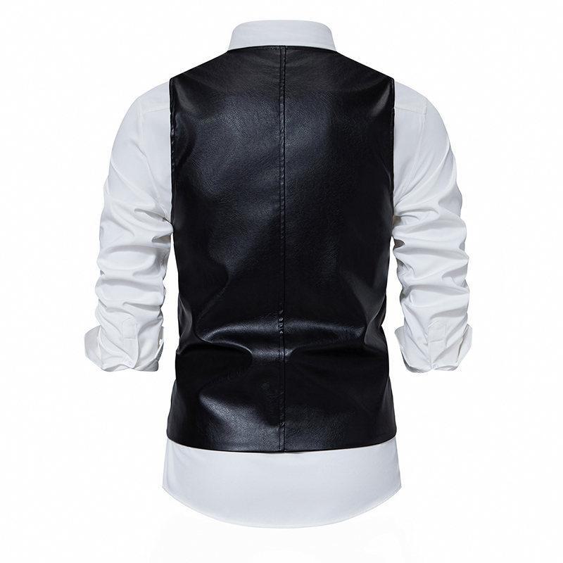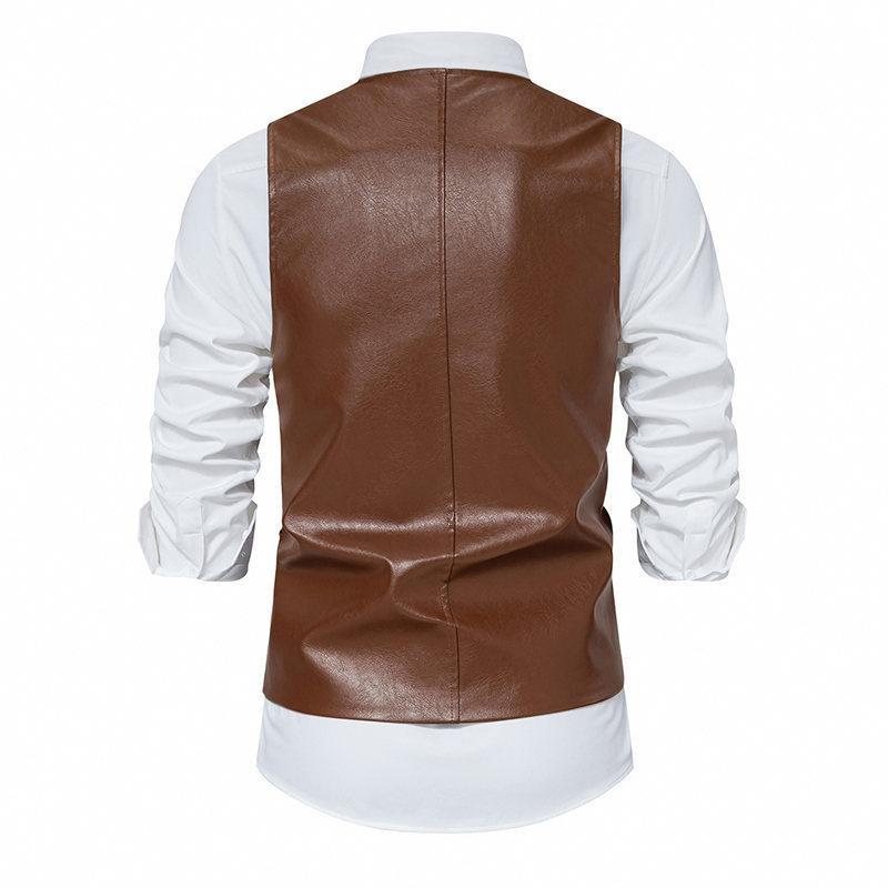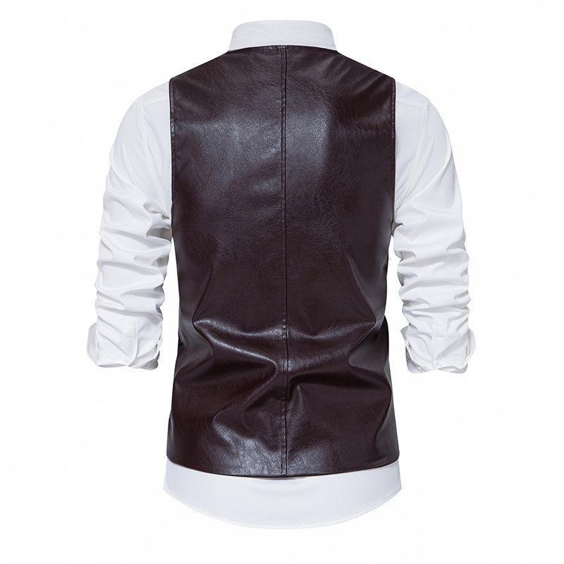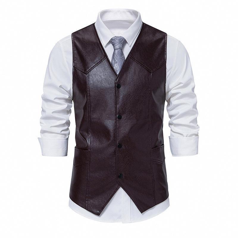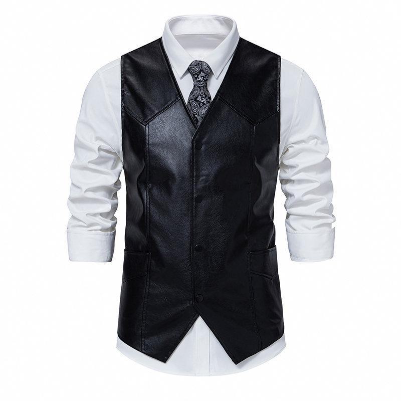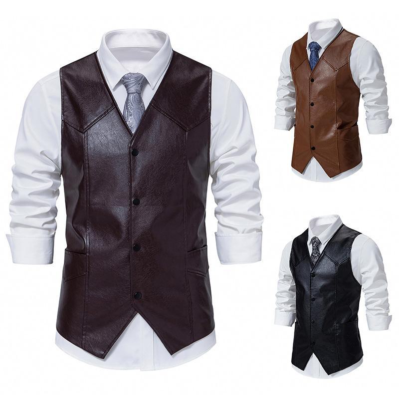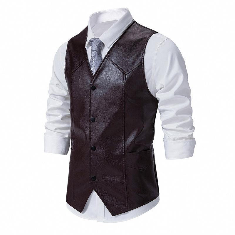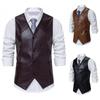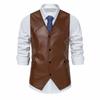 Colete masculino primavera e verão Nova Amazon atacado moda retro V-neck PU couro de peito único colete de motocicleta