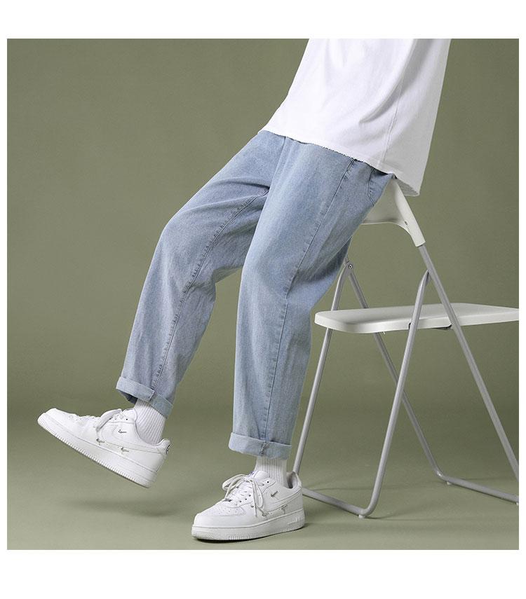 Compre Jeans de cor clara Outono Primavera e Verão Calças retas soltas masculinas Macacão de marca na moda Calças casuais masculinas no atacado no Joom.pro