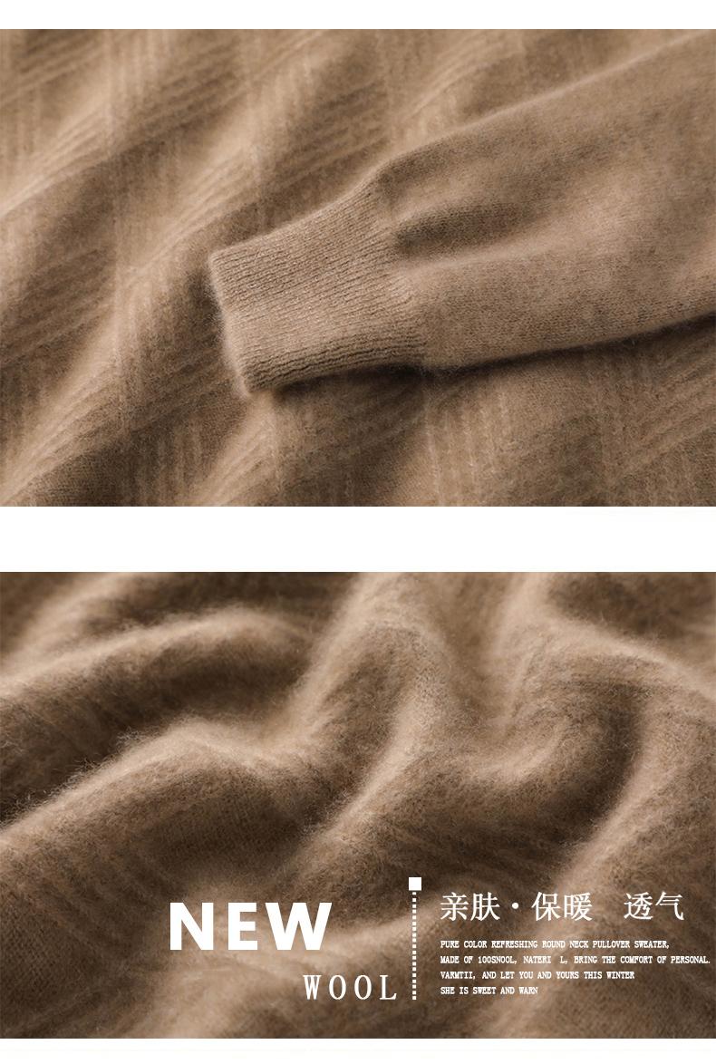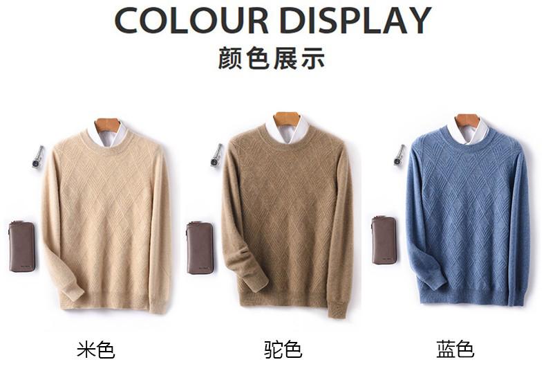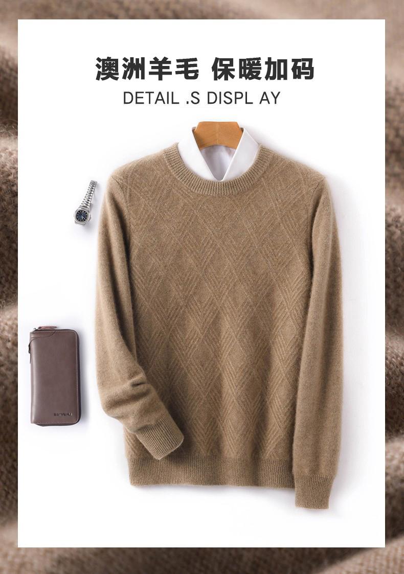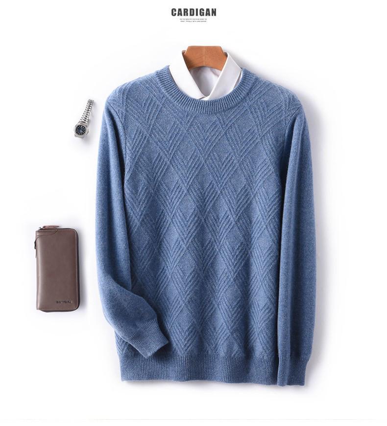 Outono e Inverno novo suéter de cashmere homens pescoço redondo pullover engrossado jacquard suéter negócio casual 100 camisa de fundo de lã