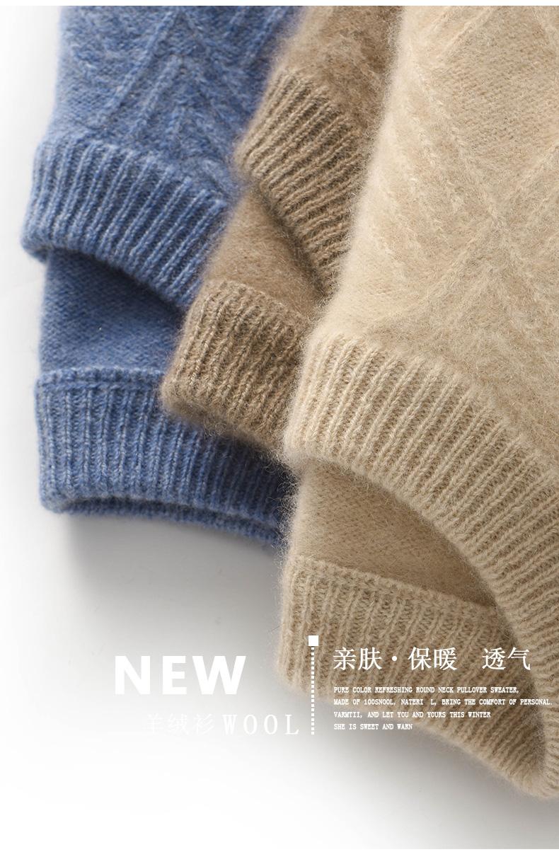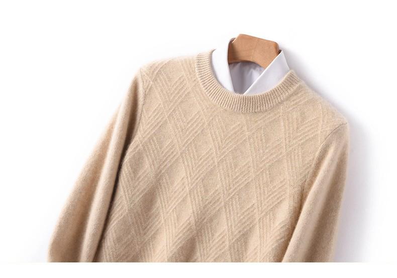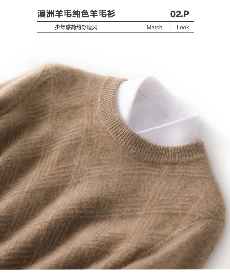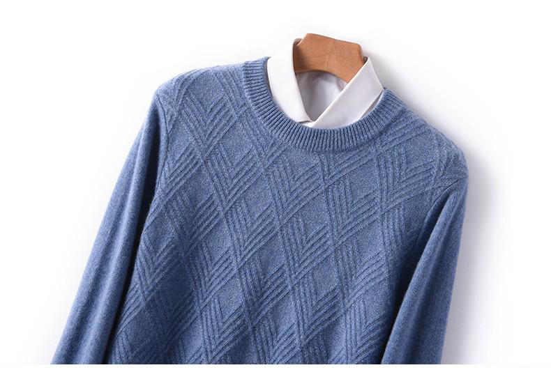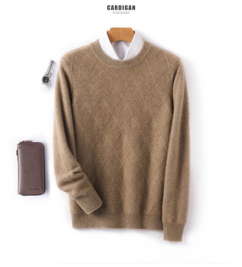 Outono e Inverno novo suéter de cashmere homens pescoço redondo pullover engrossado jacquard suéter negócio casual 100 camisa de fundo de lã