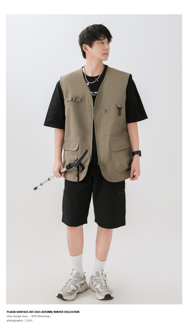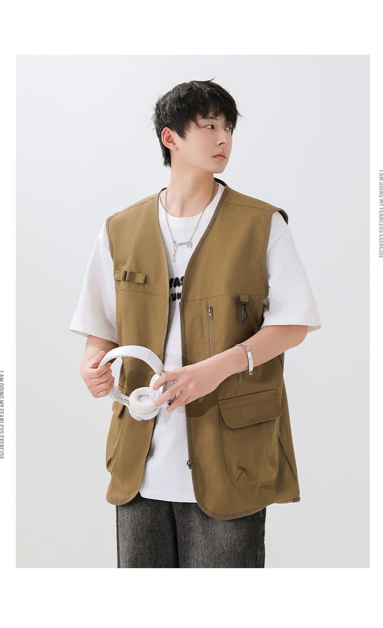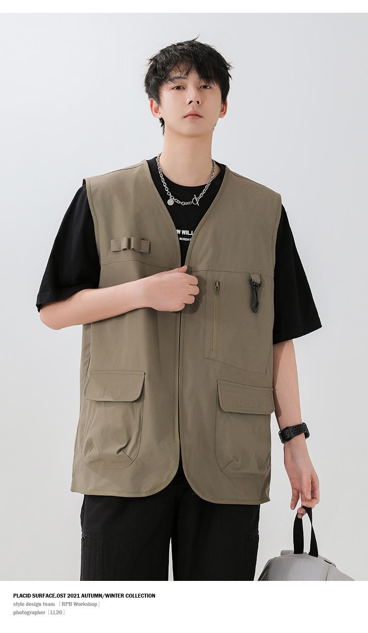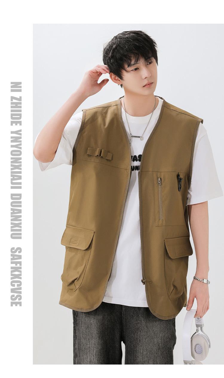 Colete de Vestuário de Trabalho Estilo Coreano Masculino Verão Masculino Novo Colete de Pesca de Fotografia ao Ar Livre Jaqueta de Ombro Casual Masculino