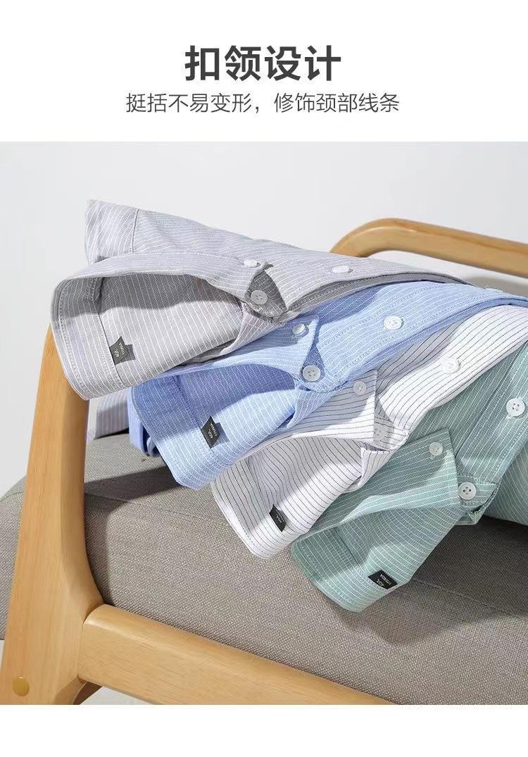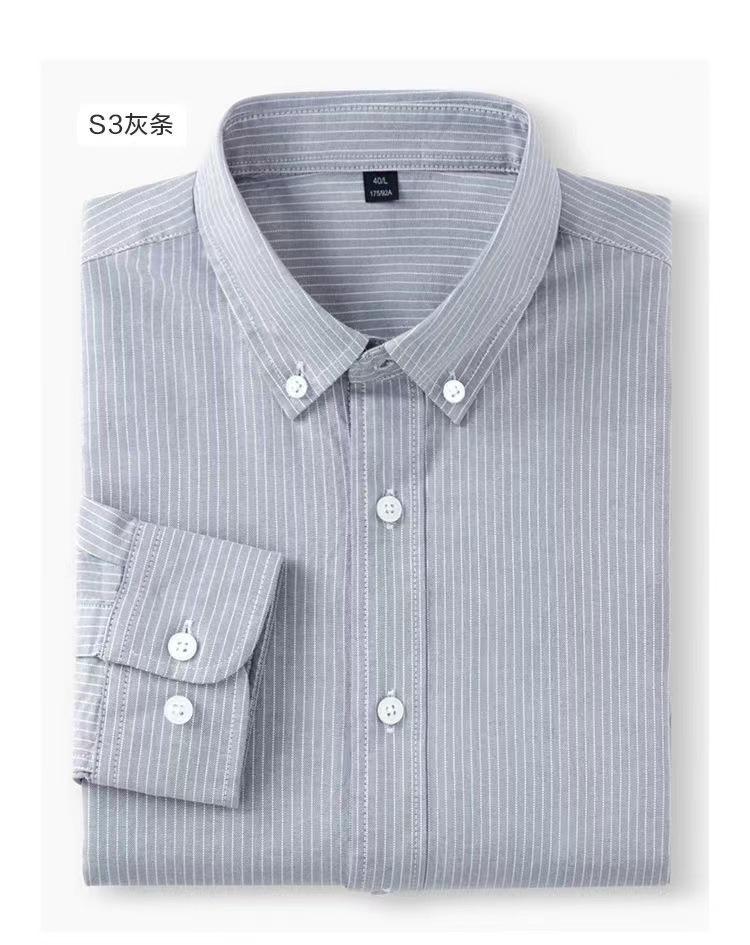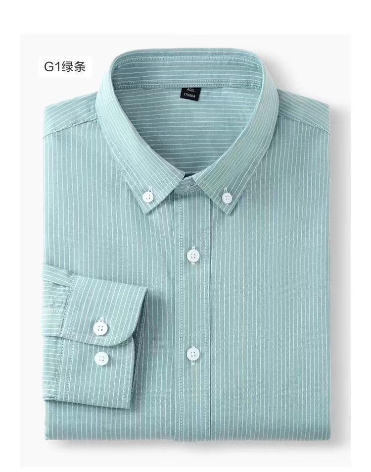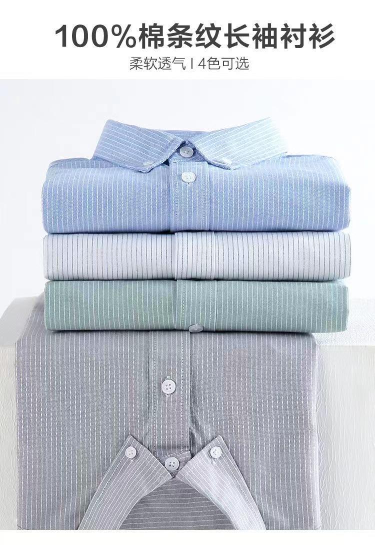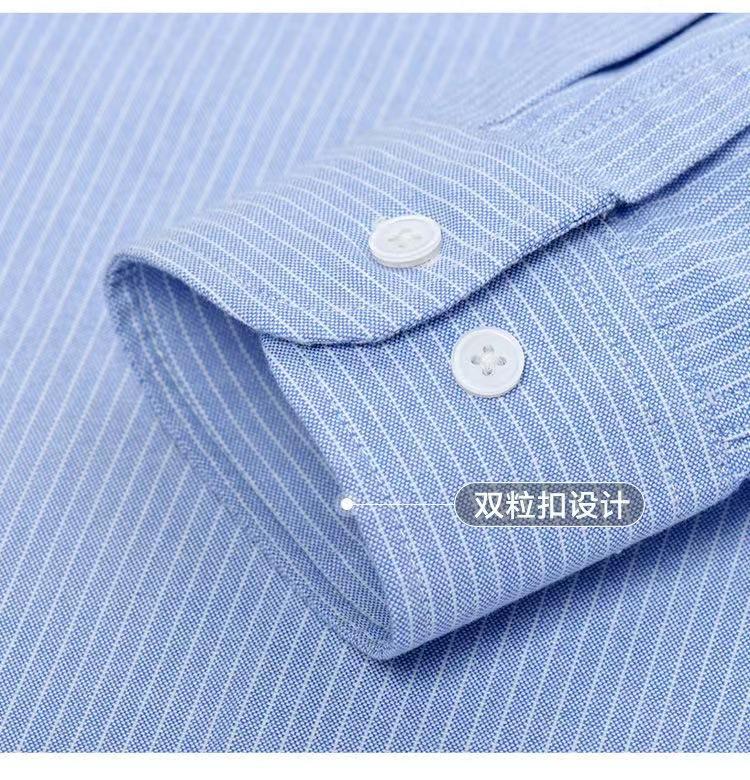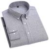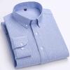 Camisa listrada de algodão masculina primavera e outono manga comprida algodão lavado oxford têxtil negócios casual lapela camisa simples