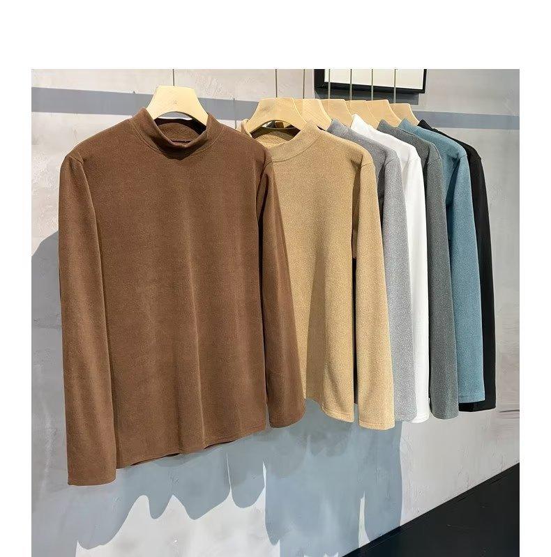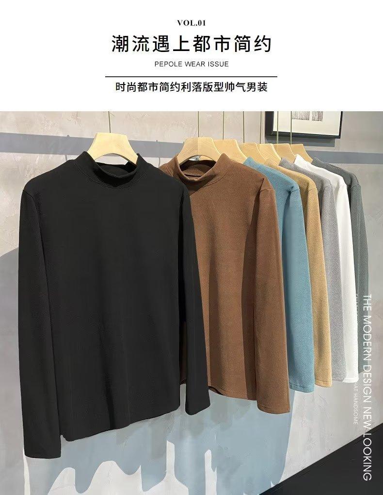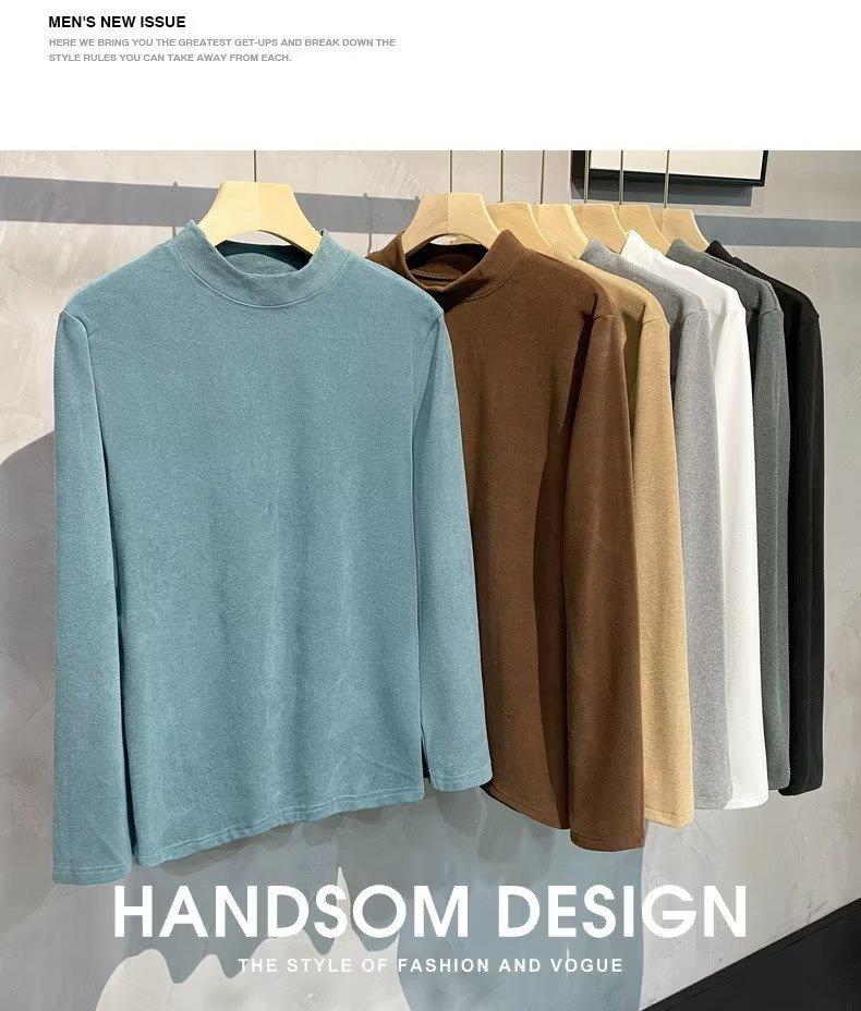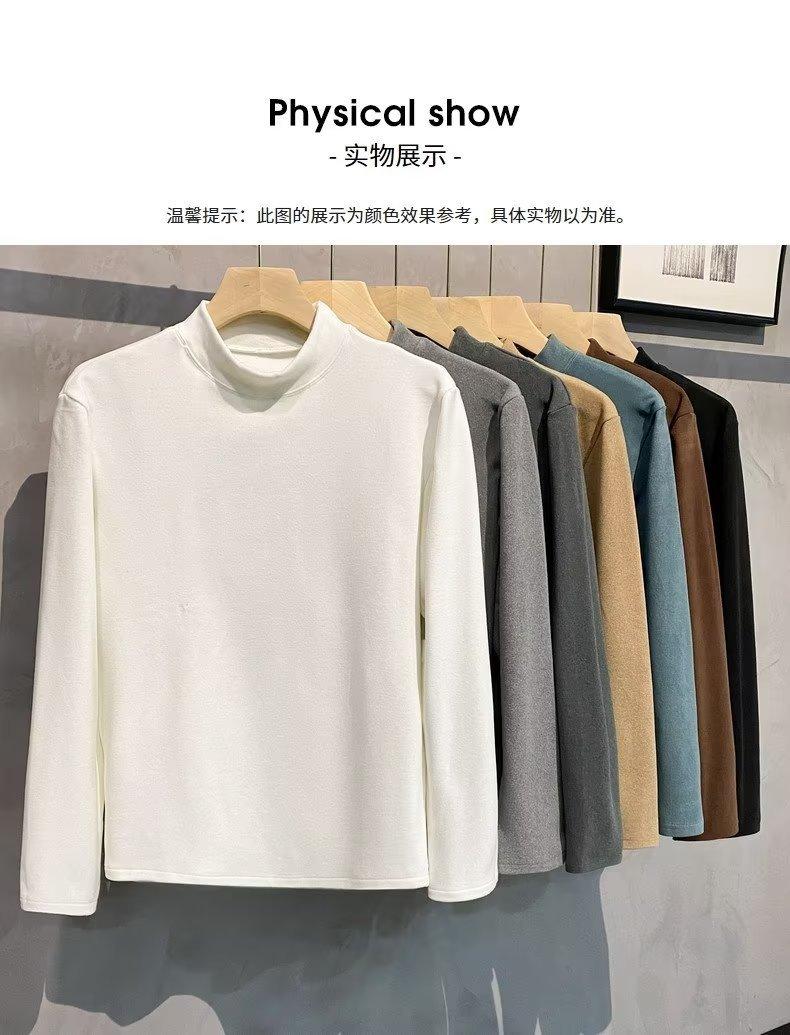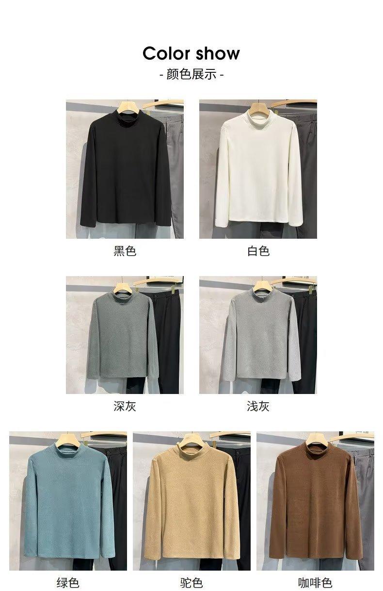 Outono e Inverno dupla face veludo meia gola tartaruga camisa de gola alta interna masculina roupas quentes de outono cor sólida manga comprida T-shirt homens