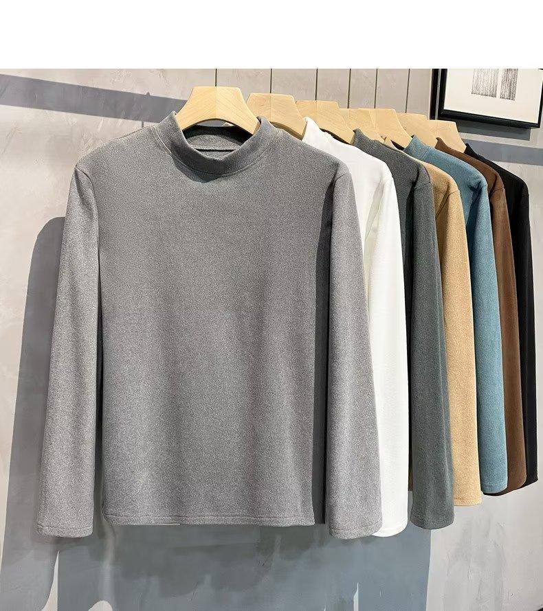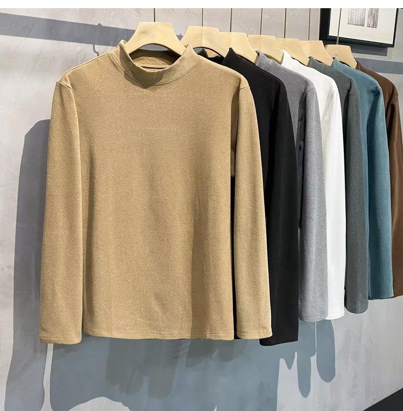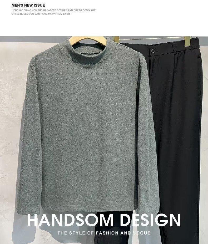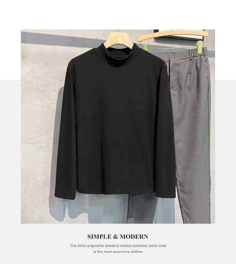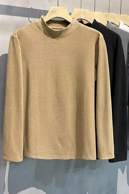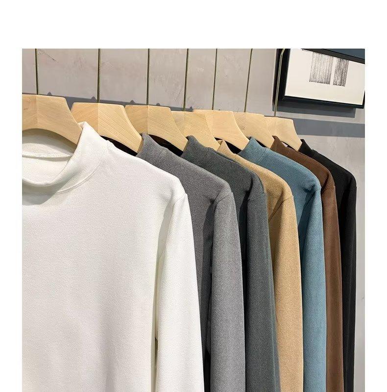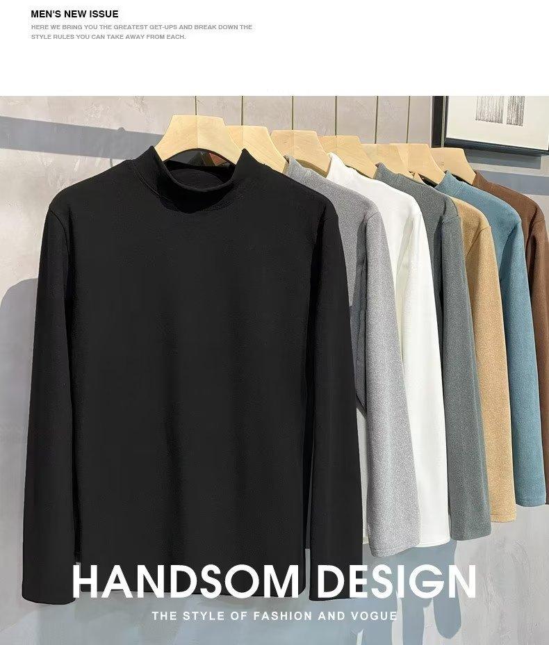 Outono e Inverno dupla face veludo meia gola tartaruga camisa de gola alta interna masculina roupas quentes de outono cor sólida manga comprida T-shirt homens