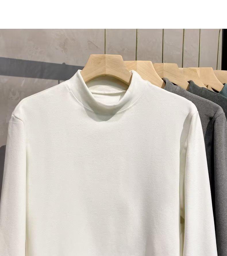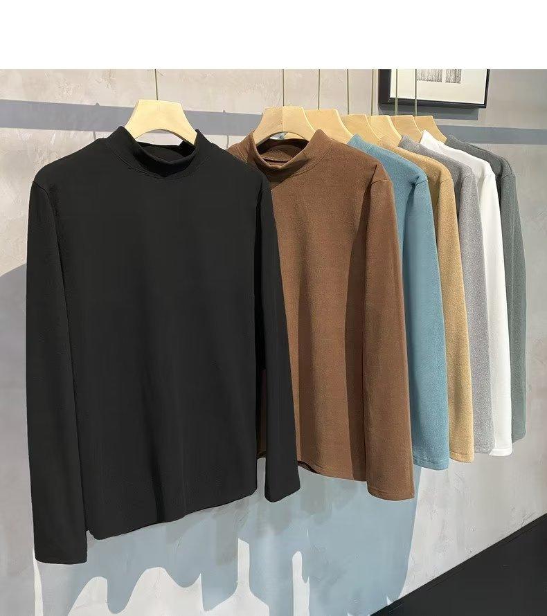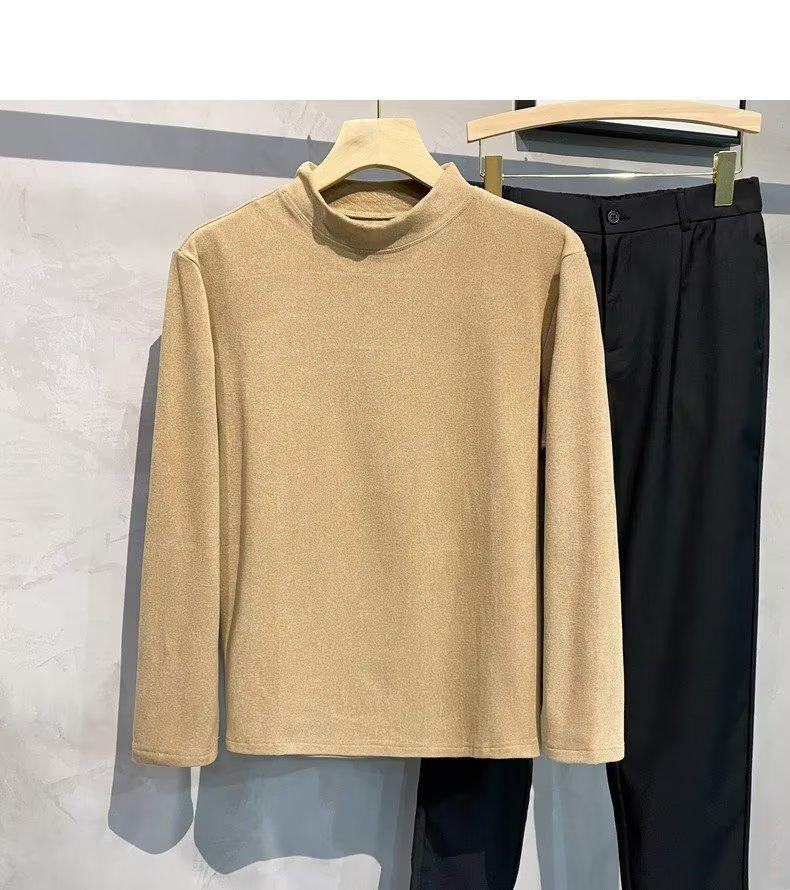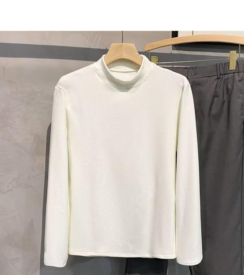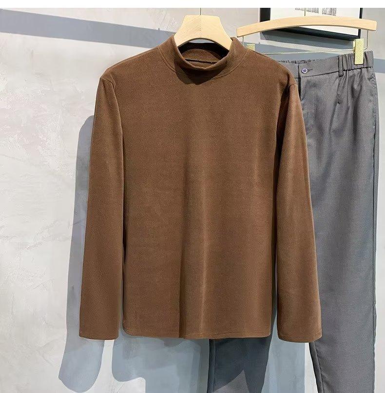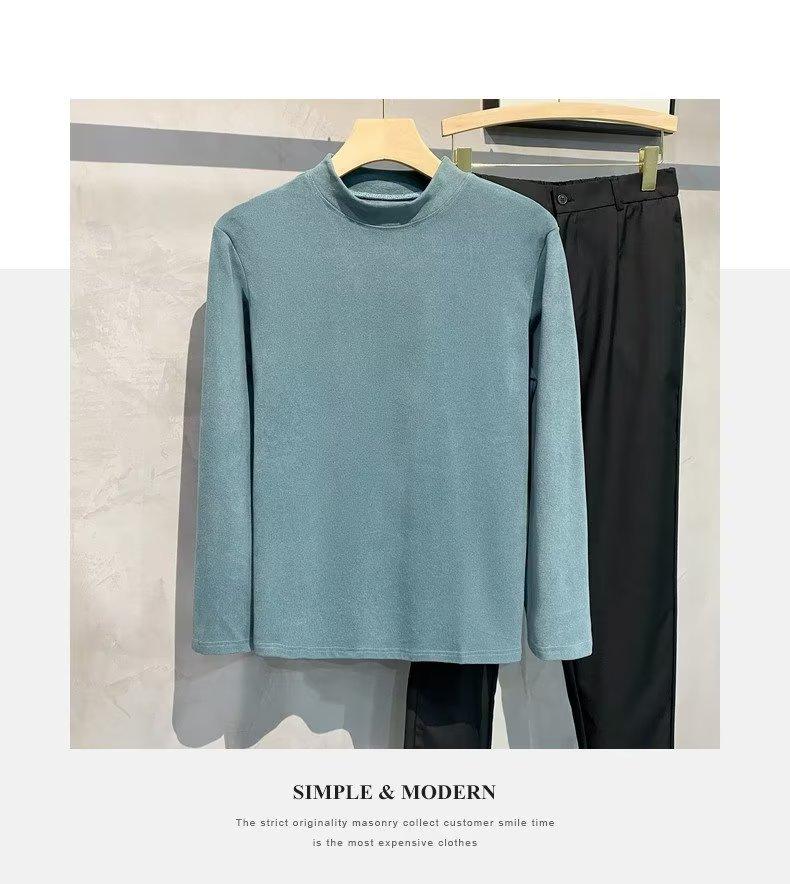 Outono e Inverno dupla face veludo meia gola tartaruga camisa de gola alta interna masculina roupas quentes de outono cor sólida manga comprida T-shirt homens