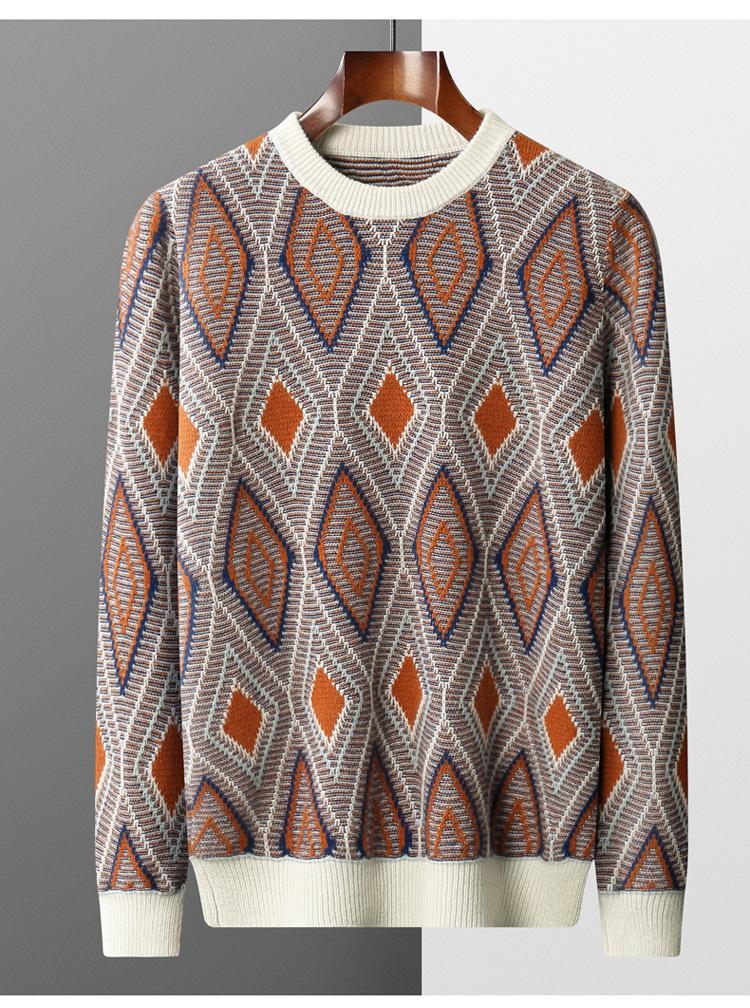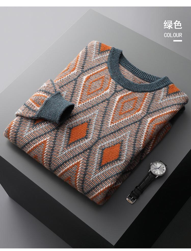 Outono e inverno Nova camisola de lã dos homens em torno do pescoço retro diamante assentamento camisola dos homens solto plus size camisola de lã grossa