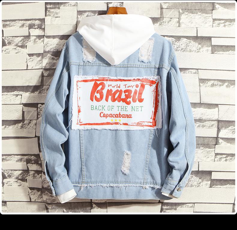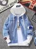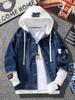 Jaqueta jeans masculina com capuz estilo coreano para outono, elegante, justa, bonita, jaqueta de beisebol para outono e inverno, roupa casual para todos os gostos
