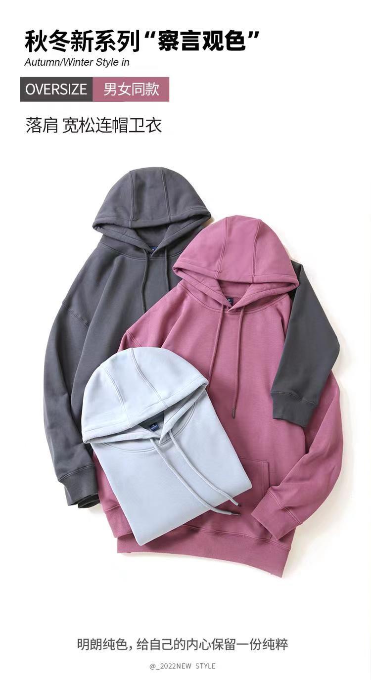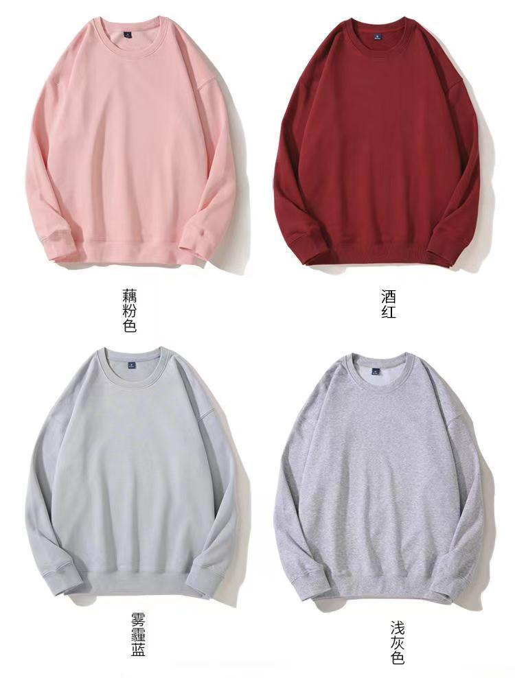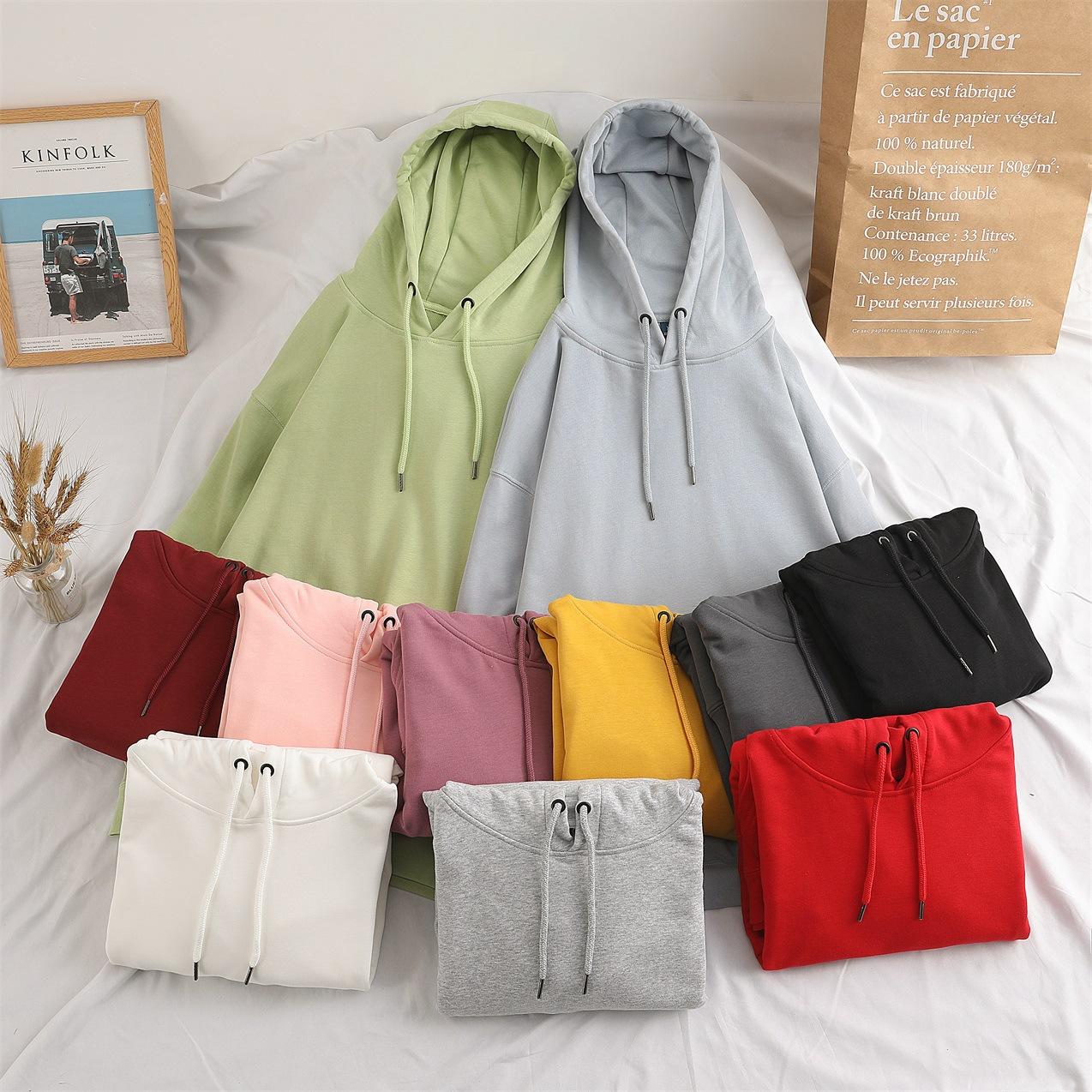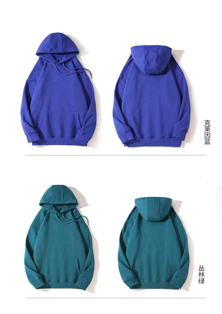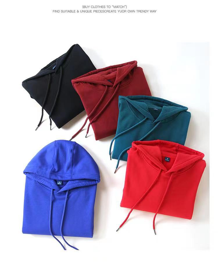 Cor sólida pullover suéter com capuz logotipo personalizado pescoço redondo manga comprida casaco de classe de trabalho impresso algodão capuz bordado