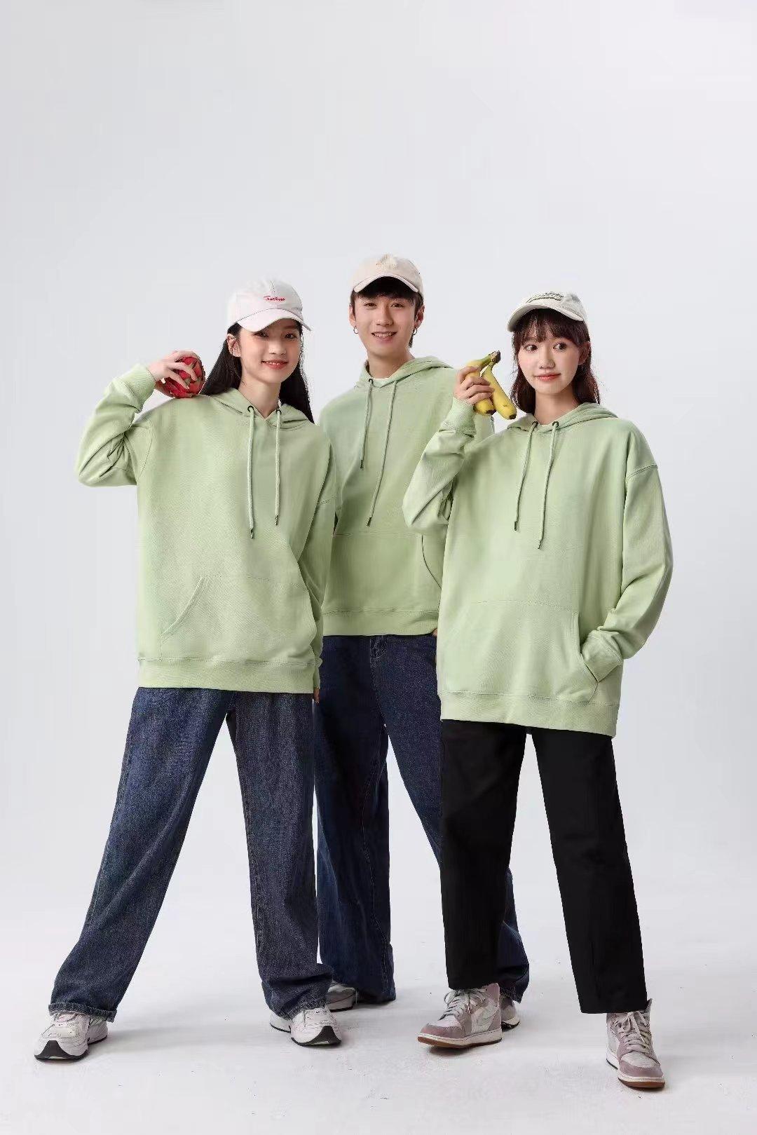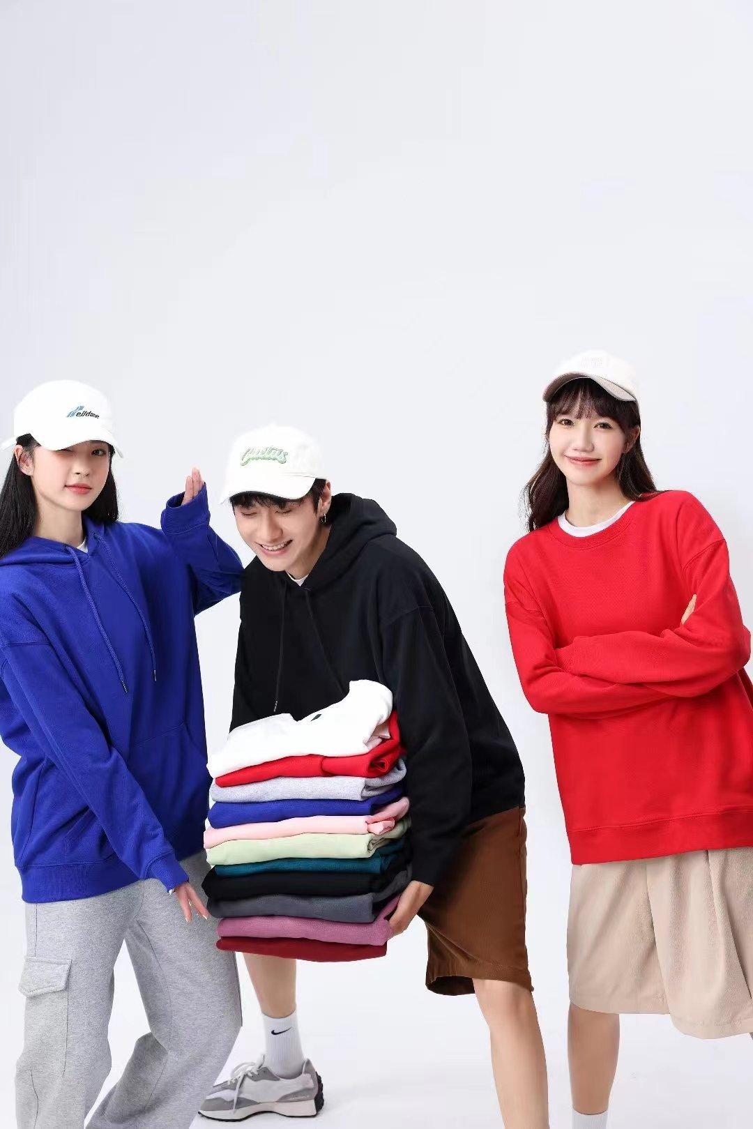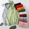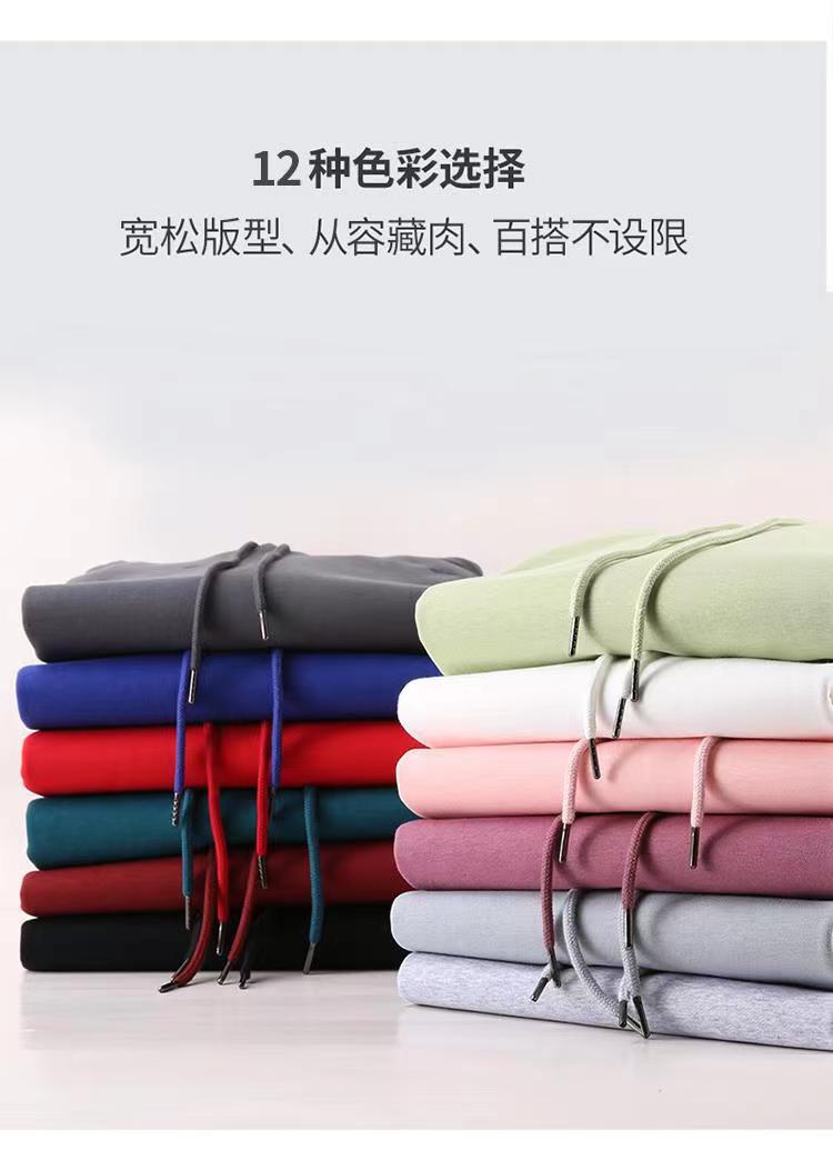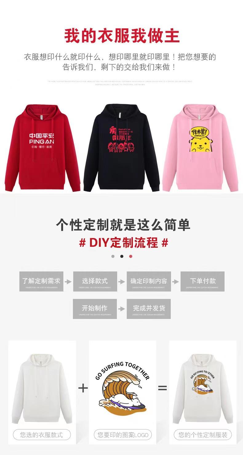 Cor sólida pullover suéter com capuz logotipo personalizado pescoço redondo manga comprida casaco de classe de trabalho impresso algodão capuz bordado