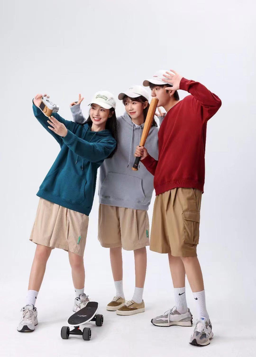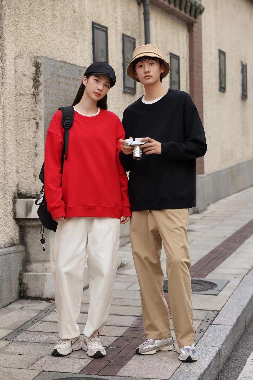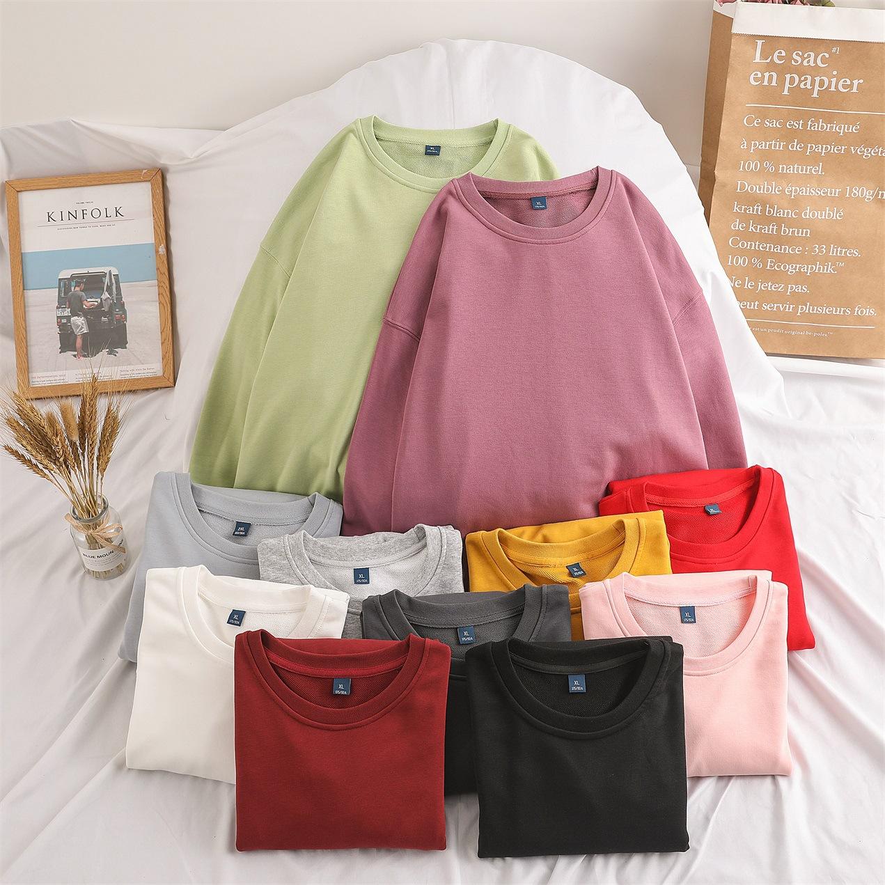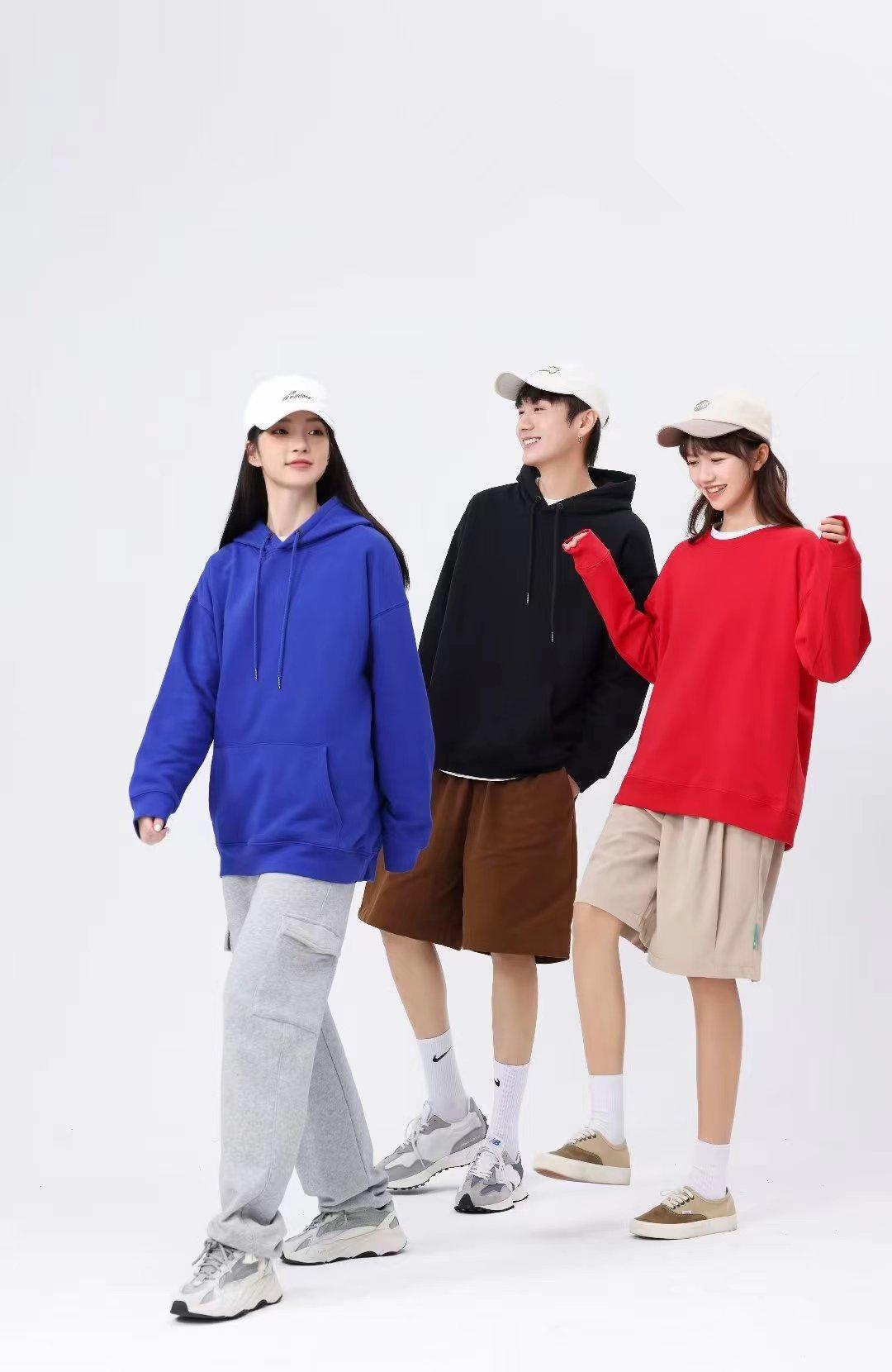 Cor sólida pullover suéter com capuz logotipo personalizado pescoço redondo manga comprida casaco de classe de trabalho impresso algodão capuz bordado