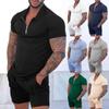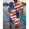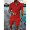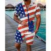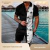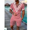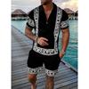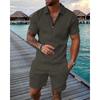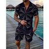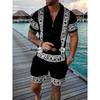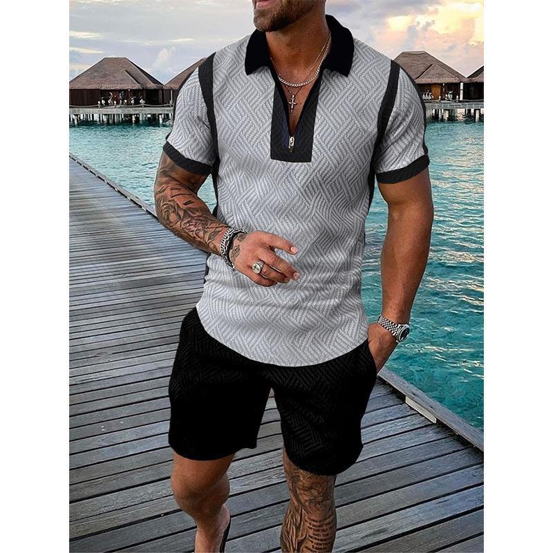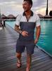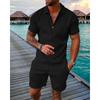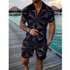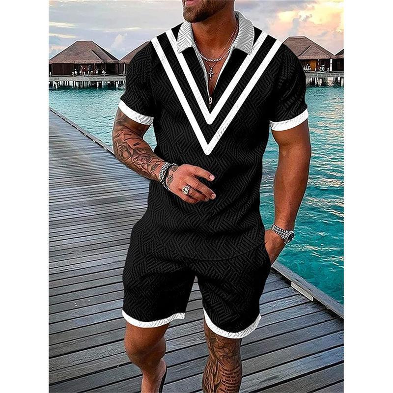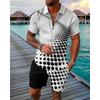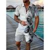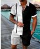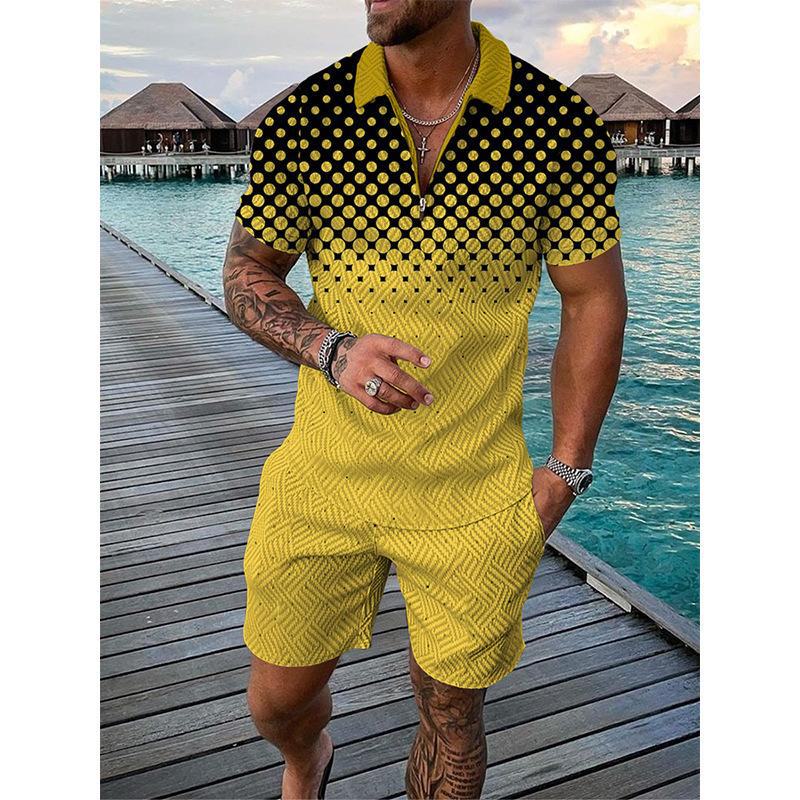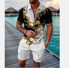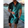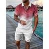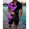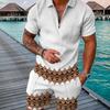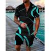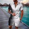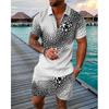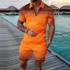 2023 Comércio Transfronteiriço Moda Masculina Casual Terno 3D Impressão Zíper Manga Curta Camisa Polo Shorts 2 peças Set