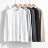Camiseta de manga comprida masculina de comércio exterior primavera e outono cor sólida masculina em torno do pescoço base casual simples lixamento de algodão t-shirt spot