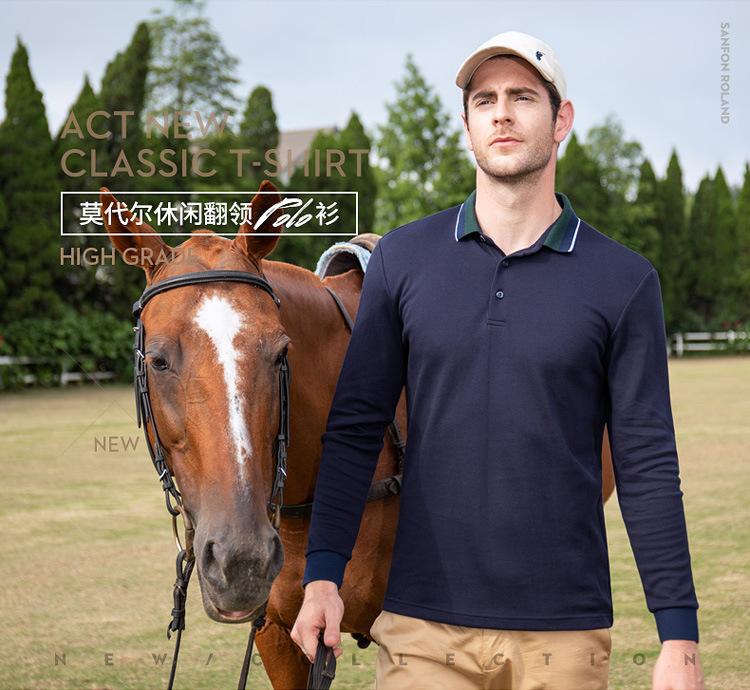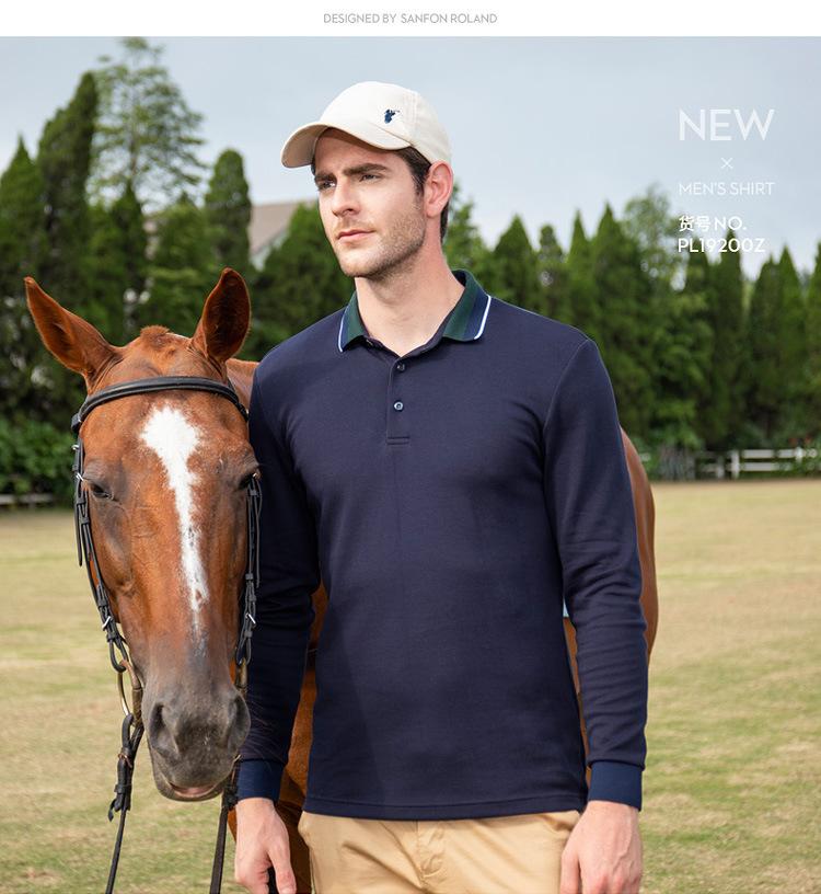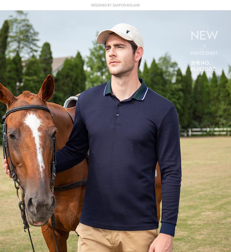 Outono e inverno nova camisa polo masculina manga comprida base camisa cor sólida juventude lazer solto