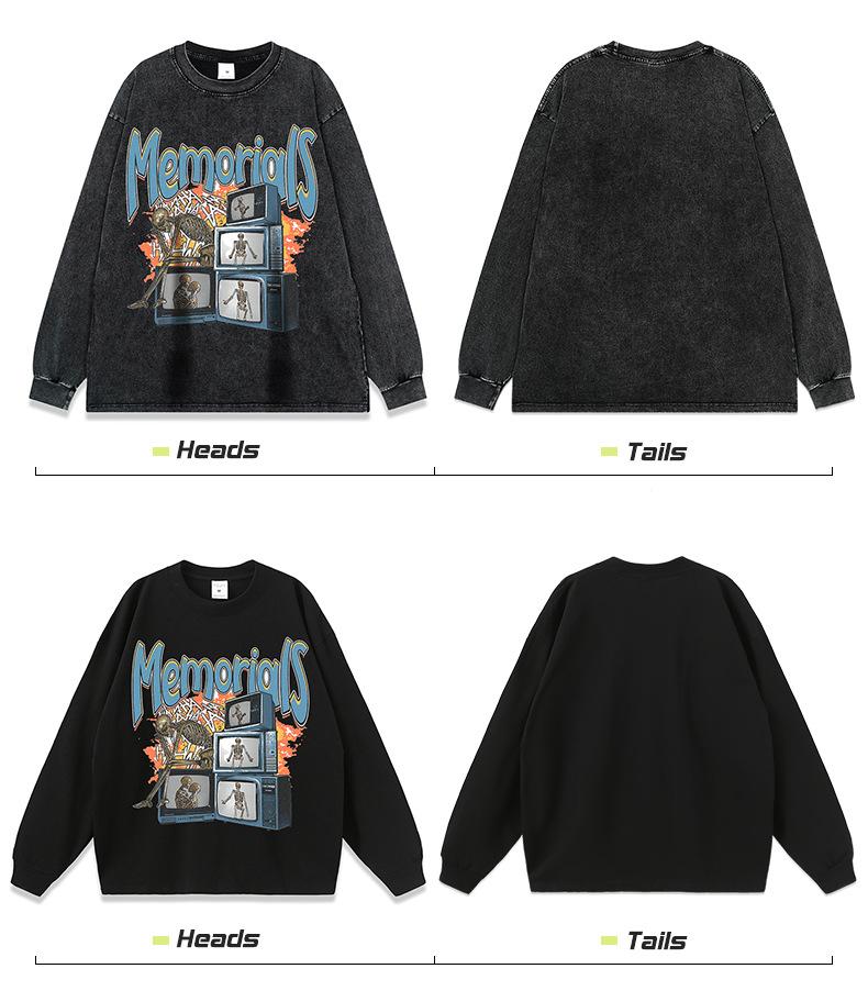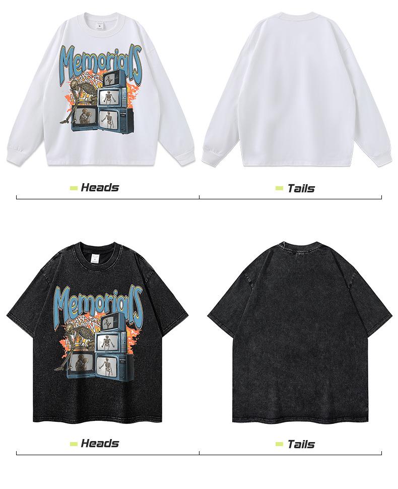 Compre Estilo americano hip hop retro dark skull print lavado angustiado homens soltos high street fashion marca hiphop manga curta camiseta no atacado no Joom.pro
