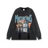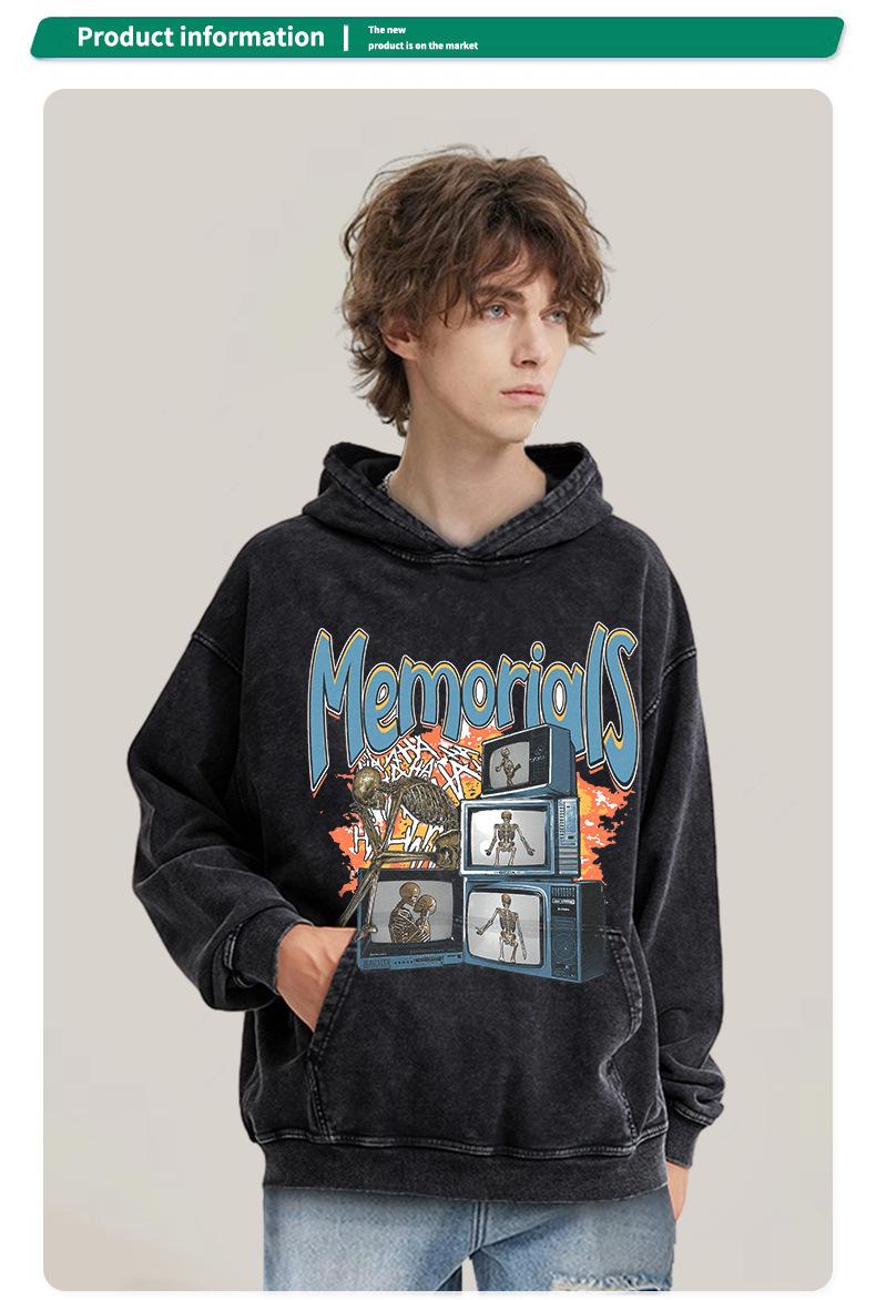 Estilo americano hip hop retro dark skull print lavado angustiado homens soltos high street fashion marca hiphop manga curta camiseta