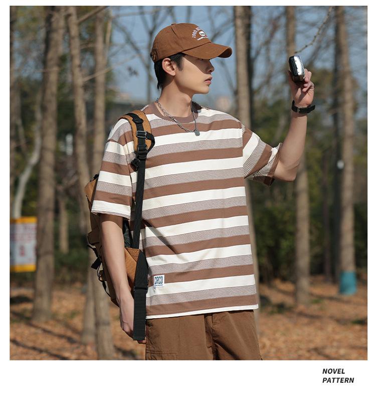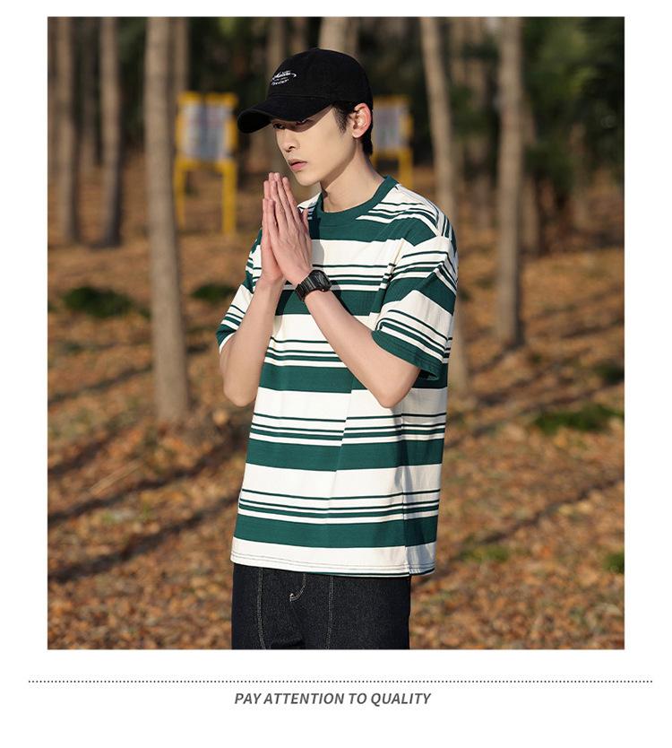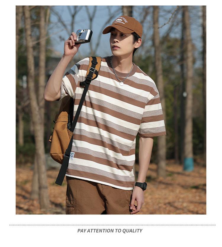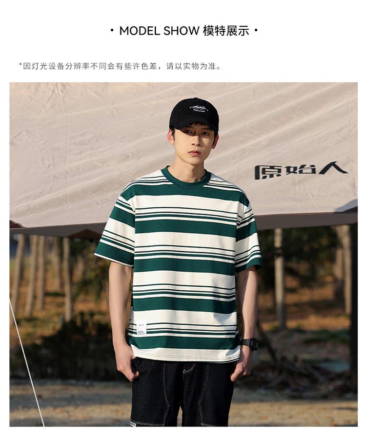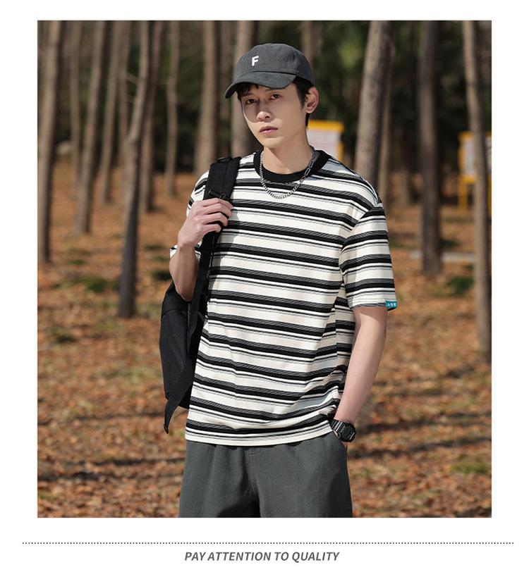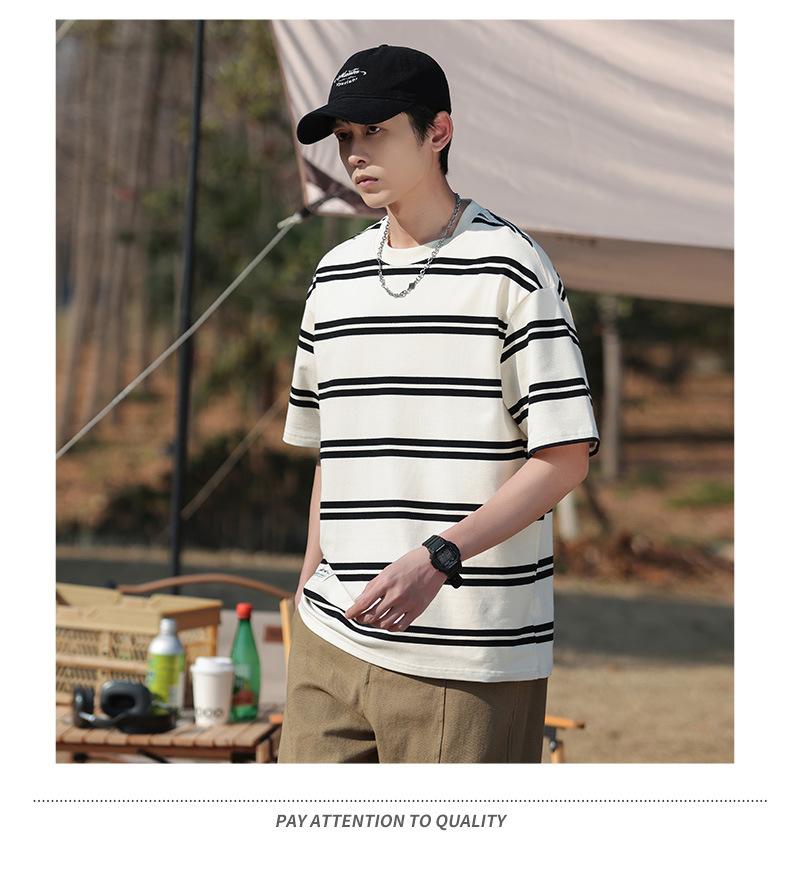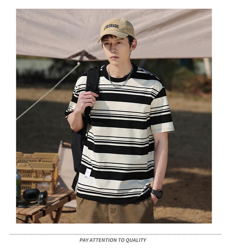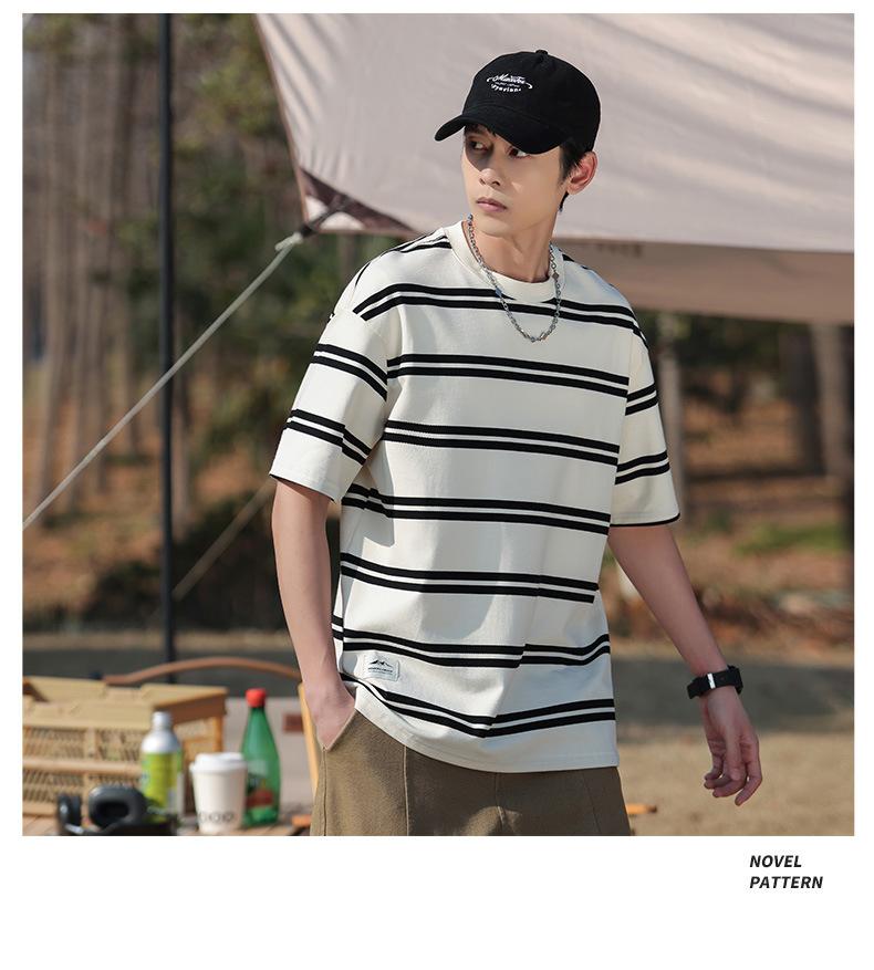 Camiseta de manga curta masculina verão nova marca de moda Ins casual meia manga camiseta estilo americano listrado solto top masculino