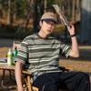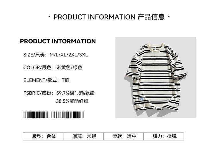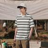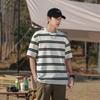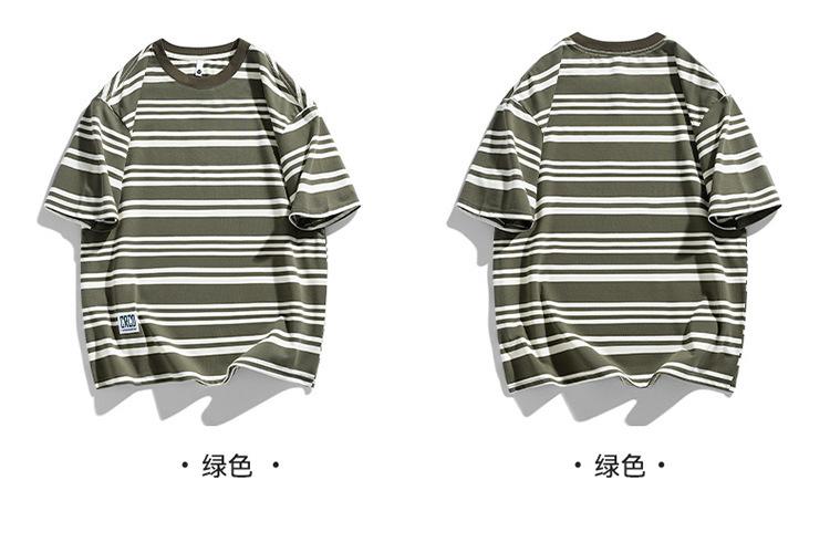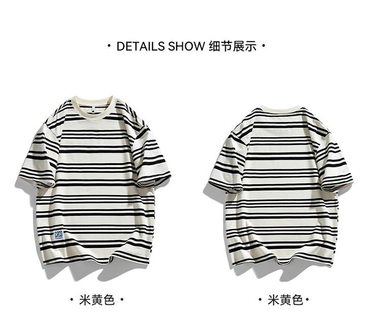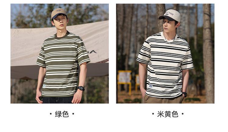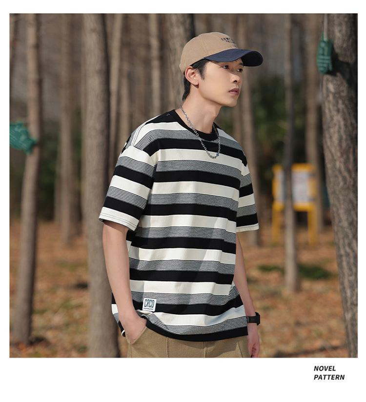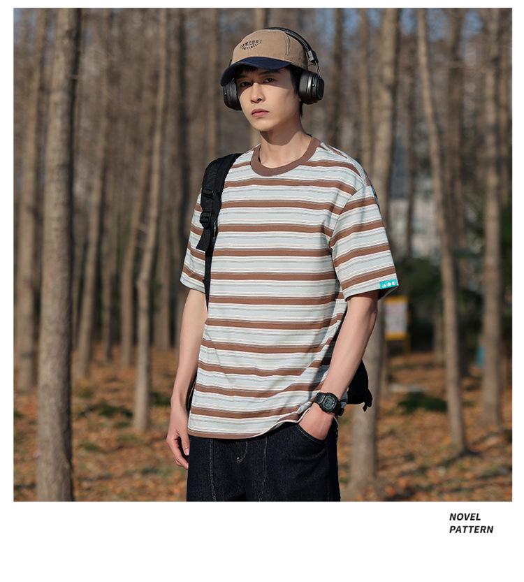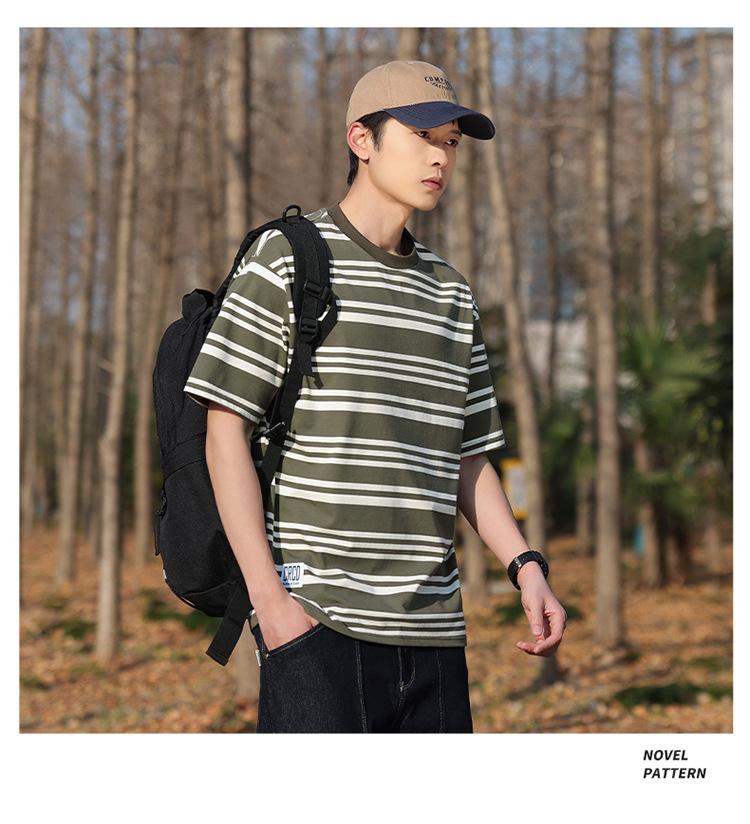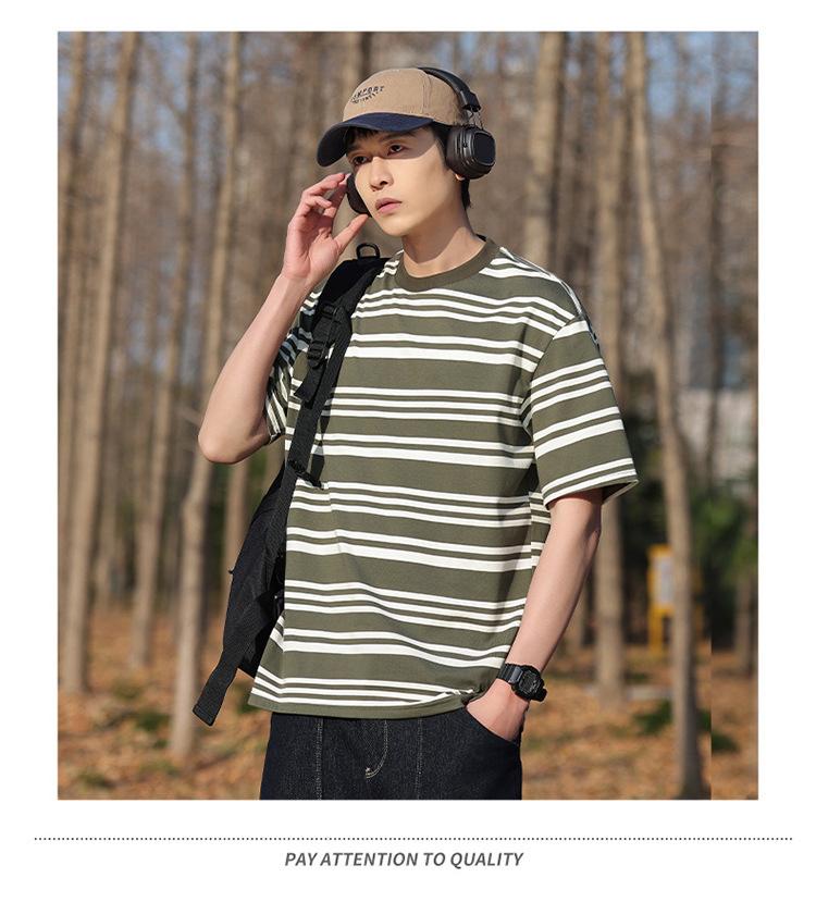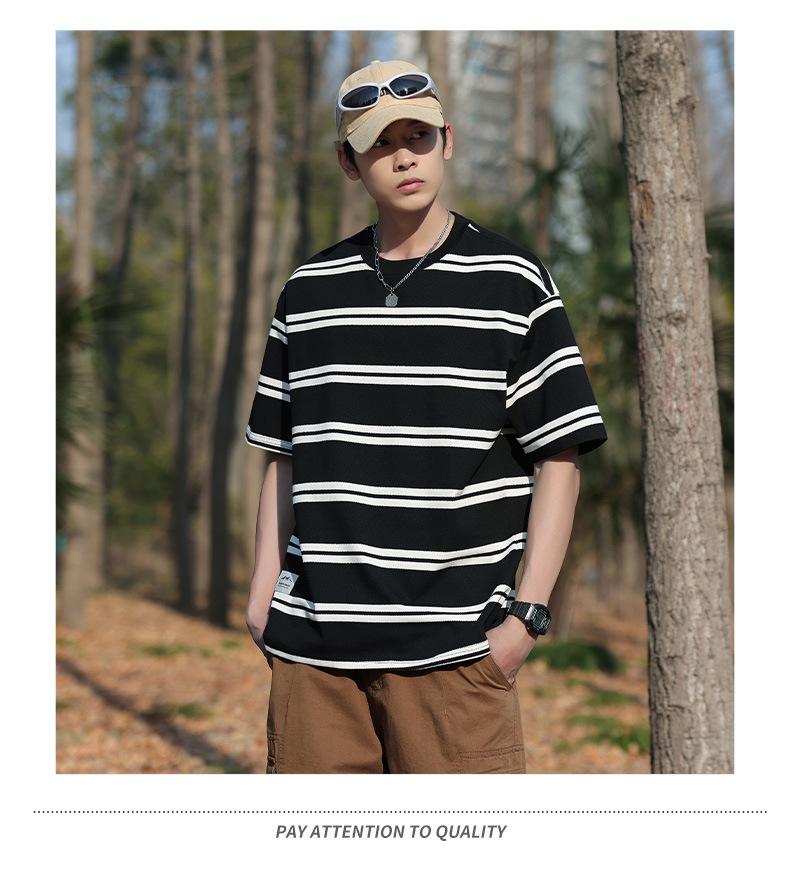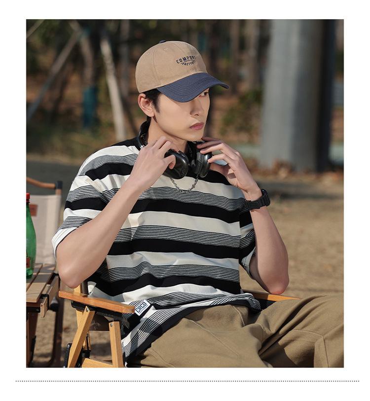 Camiseta de manga curta masculina verão nova marca de moda Ins casual meia manga camiseta estilo americano listrado solto top masculino