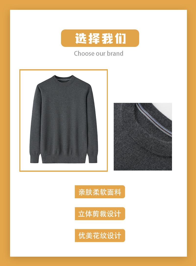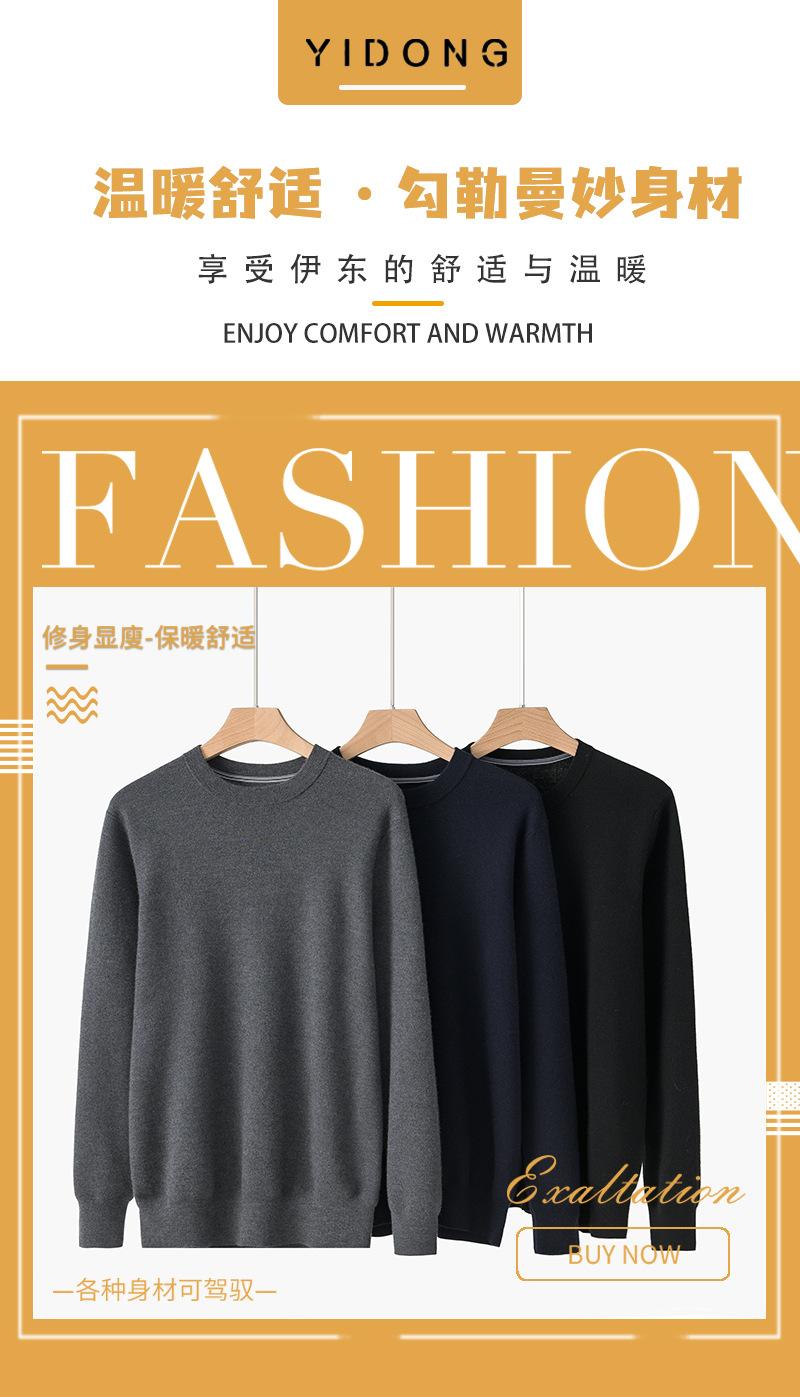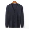 Suéter Pulôver Masculino Grosso de Tricô Duplo Fino de Calibre 18 em Cashmere de Cor Sólida, Tricotaria Elegante e Juvenil