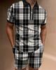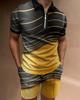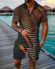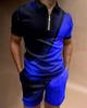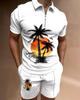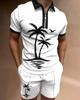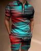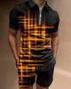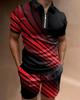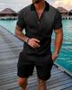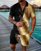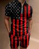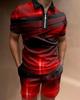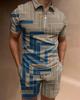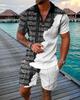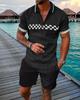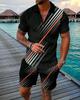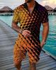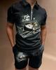 Europeu e Americano Cross-border Novos Homens 3D Impressão Digital Camisa Polo Set Lapela Manga Curta Casual Masculino Casual Terno Casual