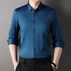 Camisa listrada masculina de meia-idade manga comprida Casual Business Homens Slim-fit moda gola dupla camisa de gola vertical