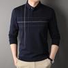 Primavera e Outono Nova Camisa Polo de Manga Longa Suéter de Lapela Masculino de Meia Idade e Idoso Imitação de Lã Estampada Camiseta Casual de Negócios