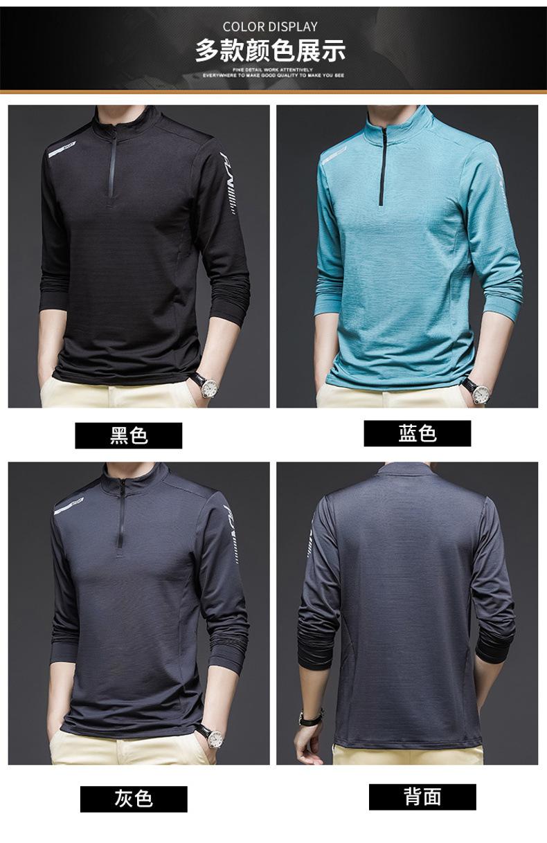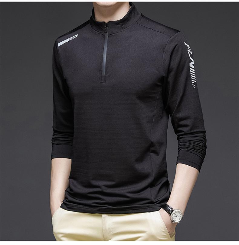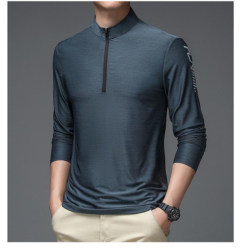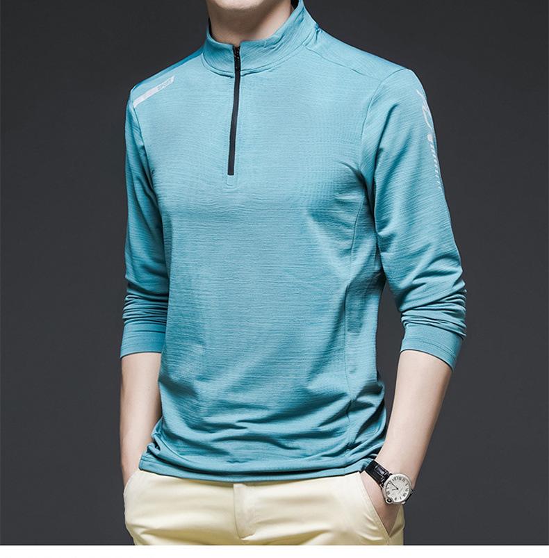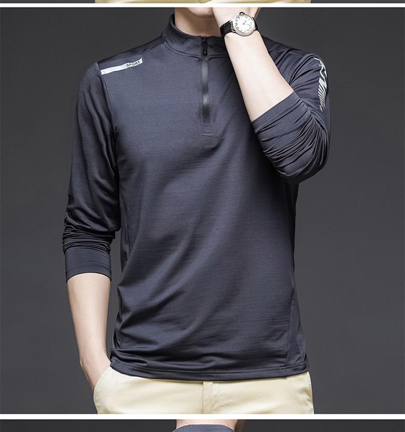 Compre Gelo seda manga comprida T-Shirt Masculino Primavera e Outono Outdoor Sports Fitness Quick-drying Roupas Moda moda Collar Suéter Casual Roupas Masculinas no atacado no Joom.pro