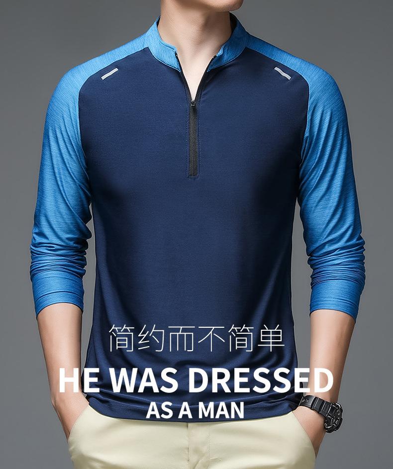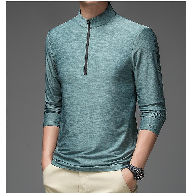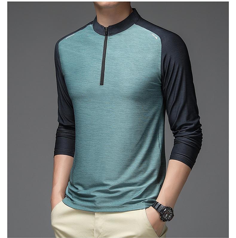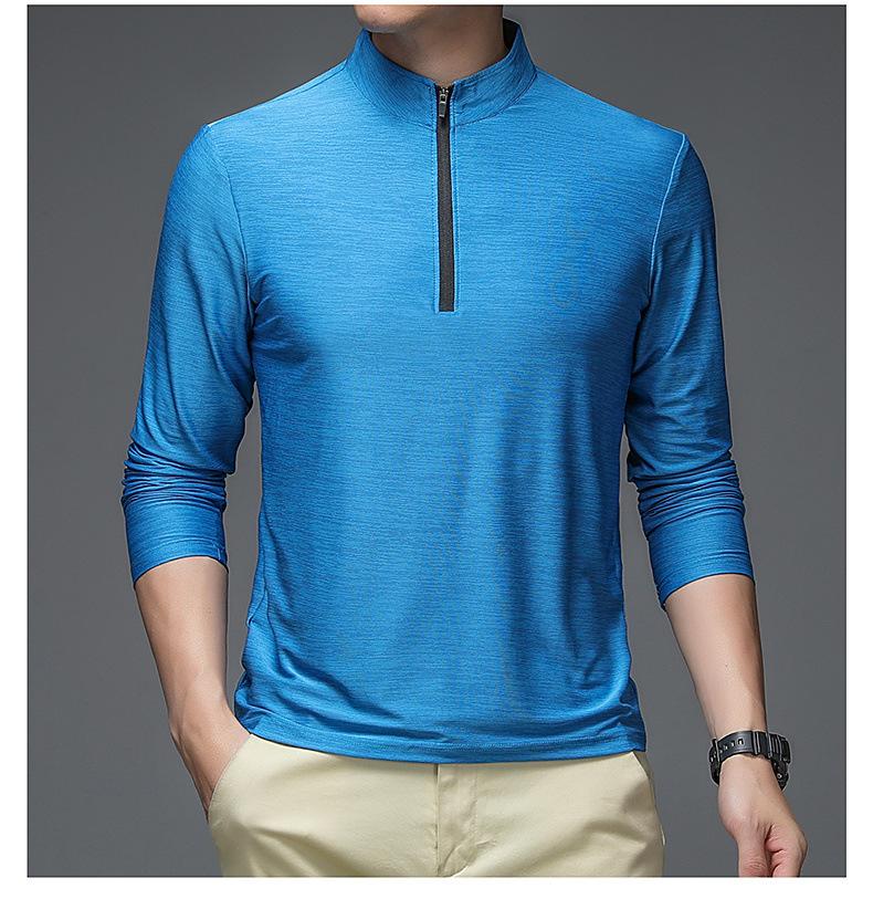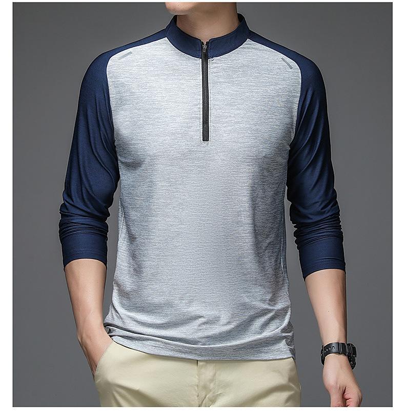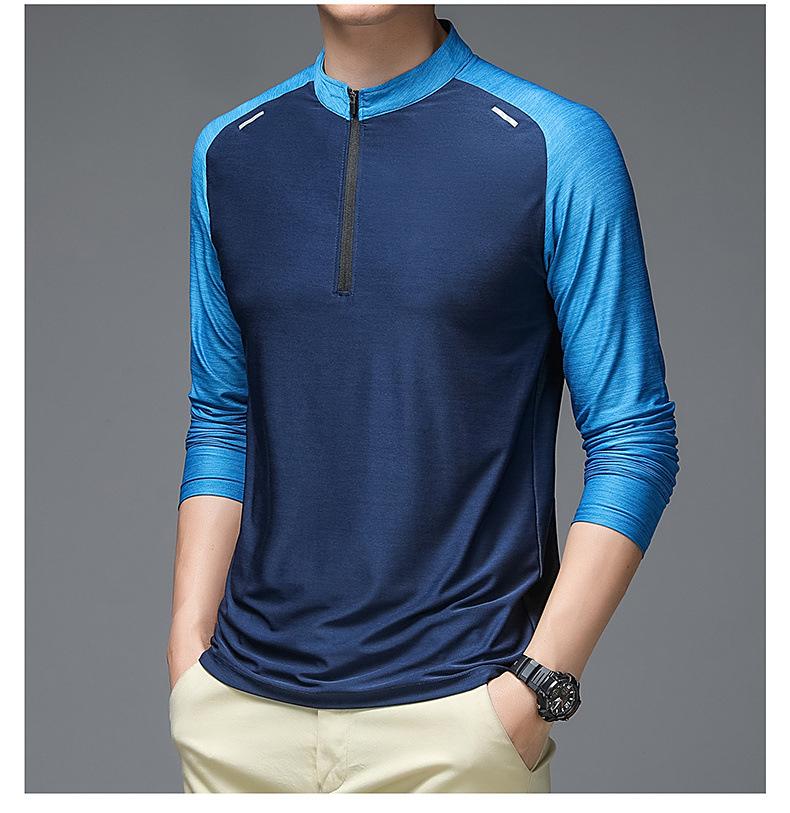 Compre Gelo seda manga comprida T-Shirt Masculino Primavera e Outono Outdoor Sports Fitness Quick-drying Roupas Moda moda Collar Suéter Casual Roupas Masculinas no atacado no Joom.pro