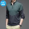 Gelo seda manga comprida T-Shirt Masculino Primavera e Outono Outdoor Sports Fitness Quick-drying Roupas Moda moda Collar Suéter Casual Roupas Masculinas