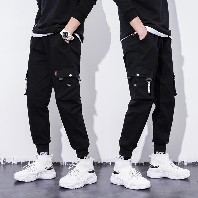 Macacão masculino primavera e outono marca de moda amarrado no tornozelo estilo coreano harém solto plus size estudante cropped calças casuais calças masculinas
