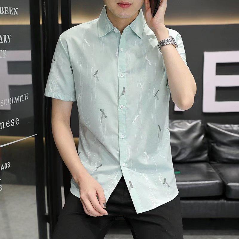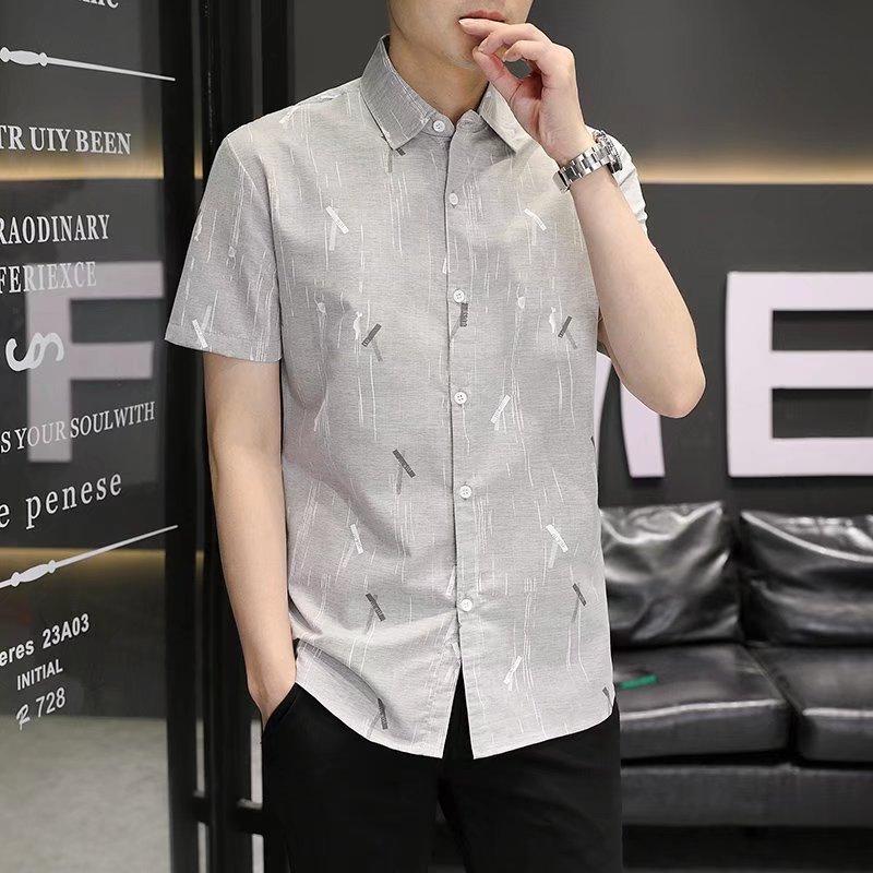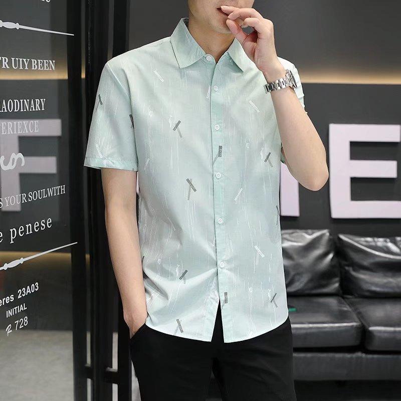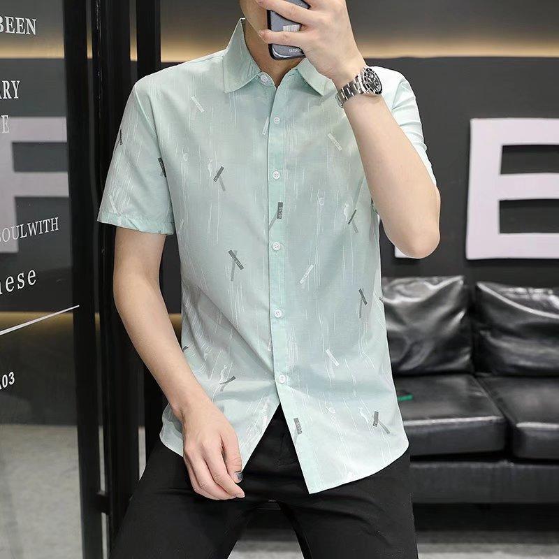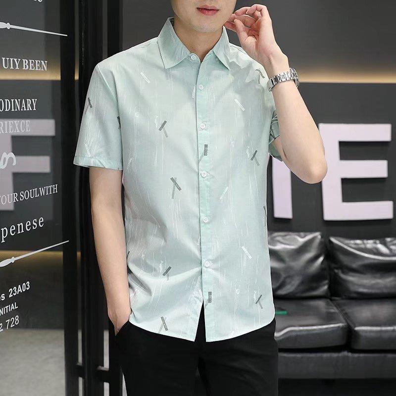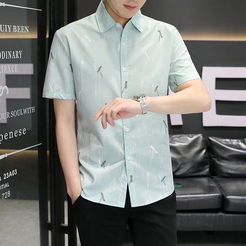 2024 primavera e verão nova camisa masculina manga curta meia manga estilo coreano moda estampada jovem negócios casual camisa bonita