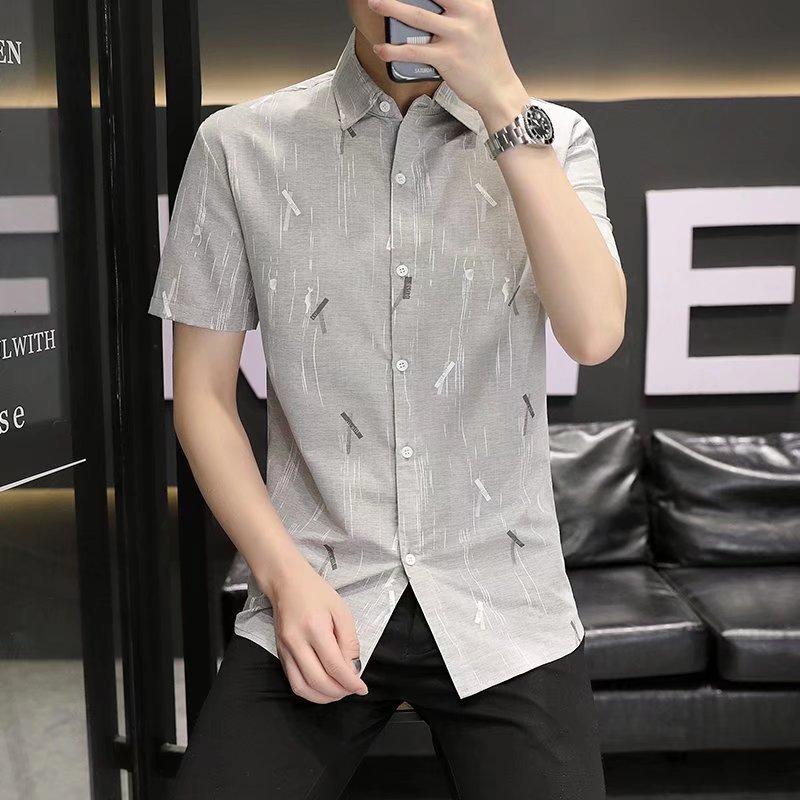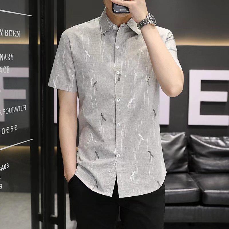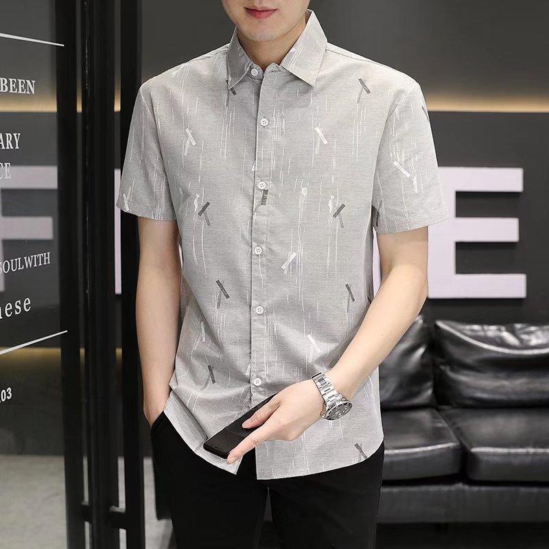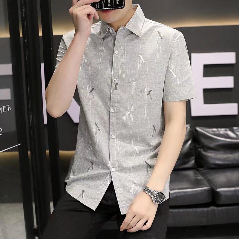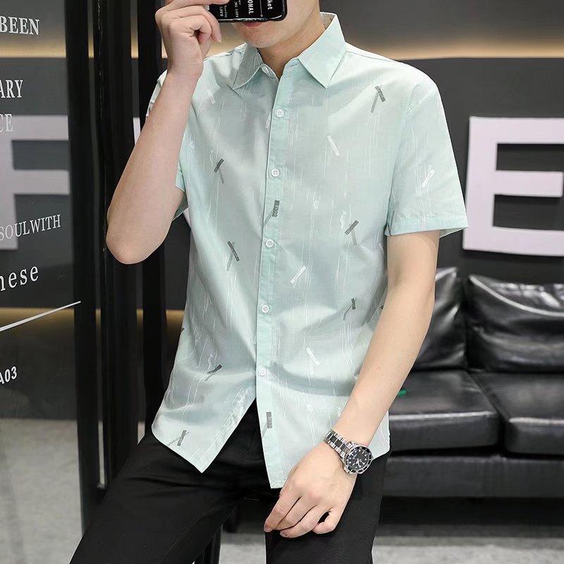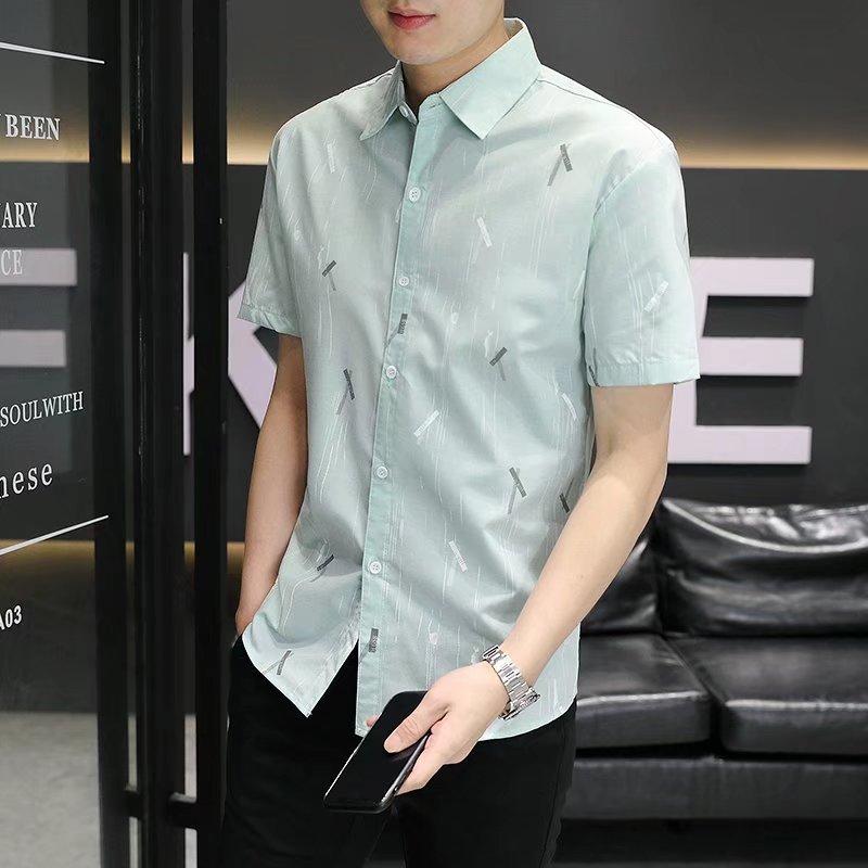 2024 primavera e verão nova camisa masculina manga curta meia manga estilo coreano moda estampada jovem negócios casual camisa bonita