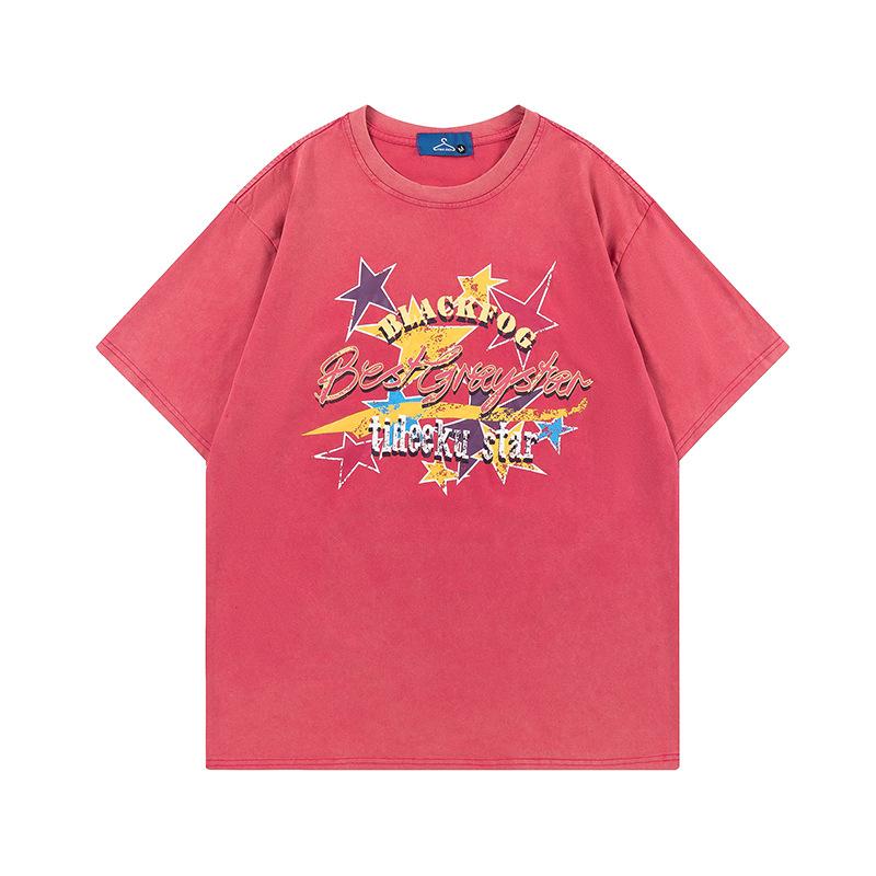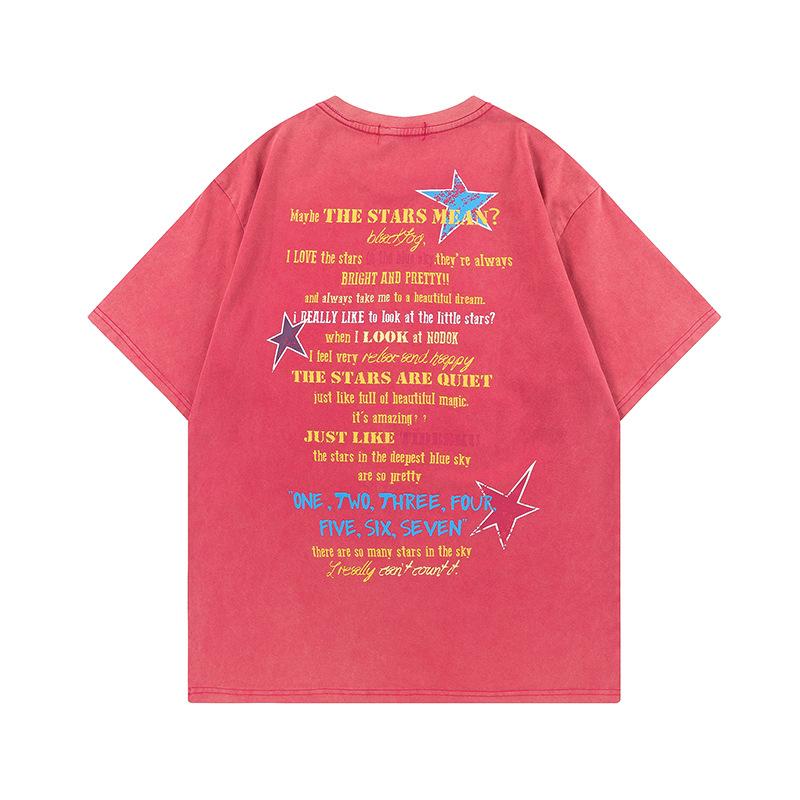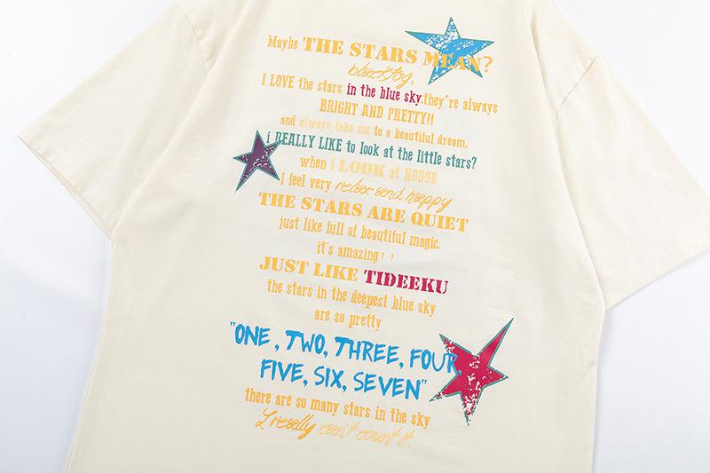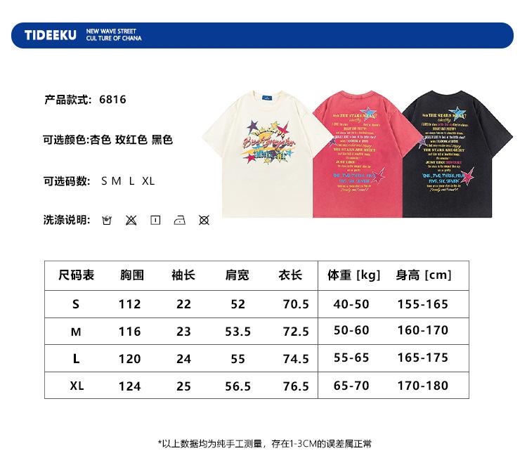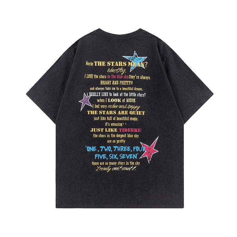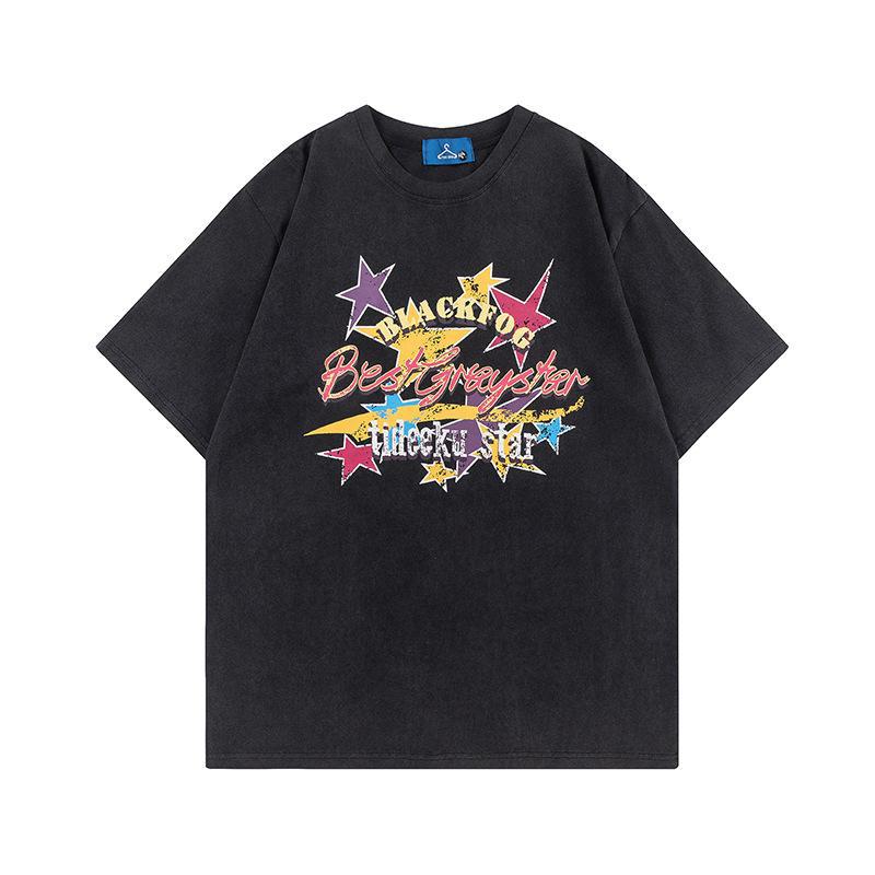 Camiseta americana de manga curta lavada velha carta de estrela impressa curta t masculino e feminino high street loose couple top
