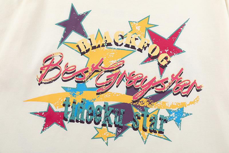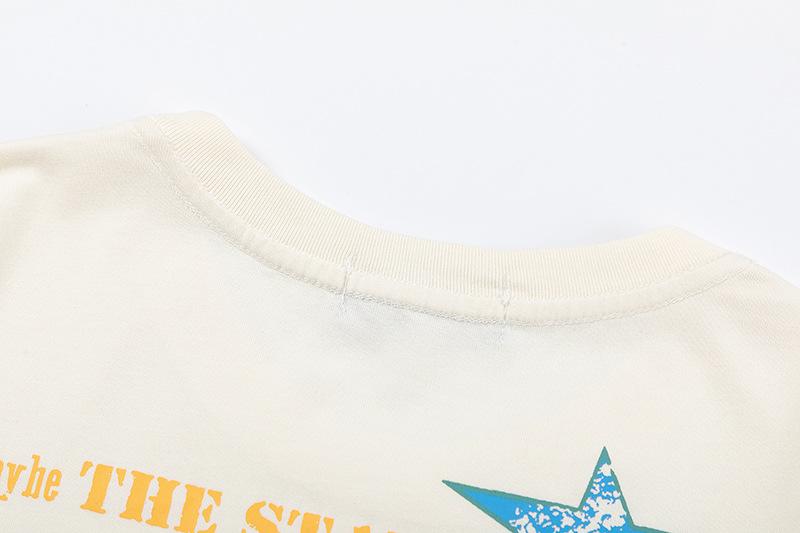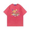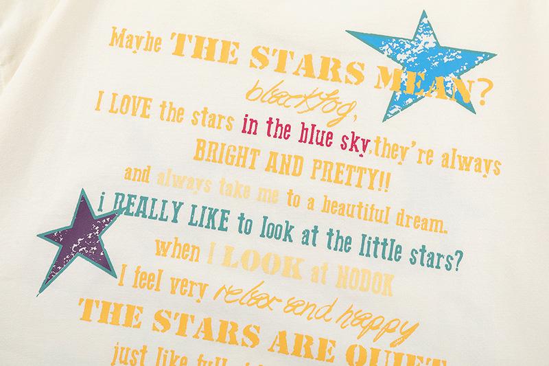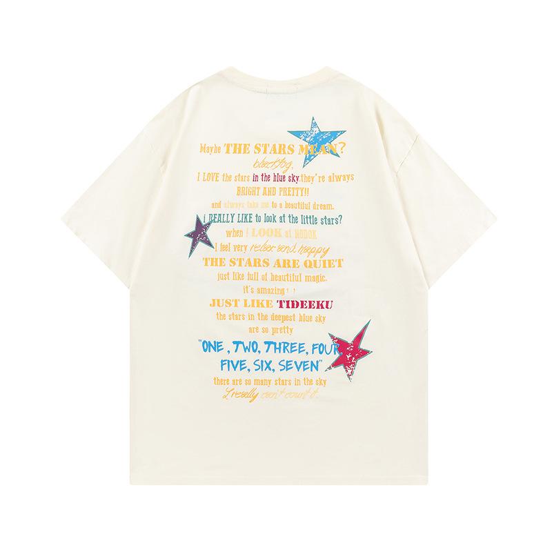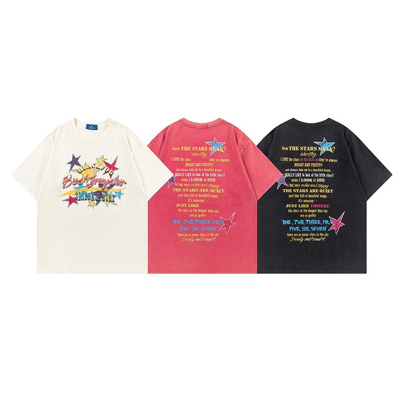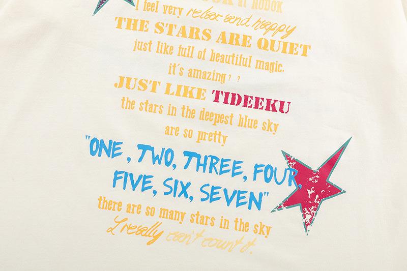 Camiseta americana de manga curta lavada velha carta de estrela impressa curta t masculino e feminino high street loose couple top