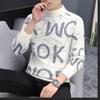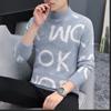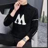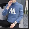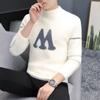 2022 Outono e Inverno Malhas Adolescente Meio Suéter de Gola Alta Masculino Elegante Suéter de Manga Comprida Suéter de Veludo Mink Quente