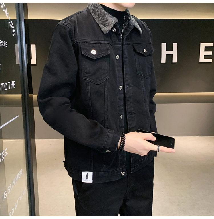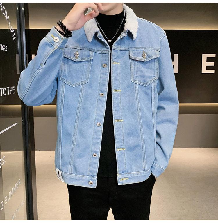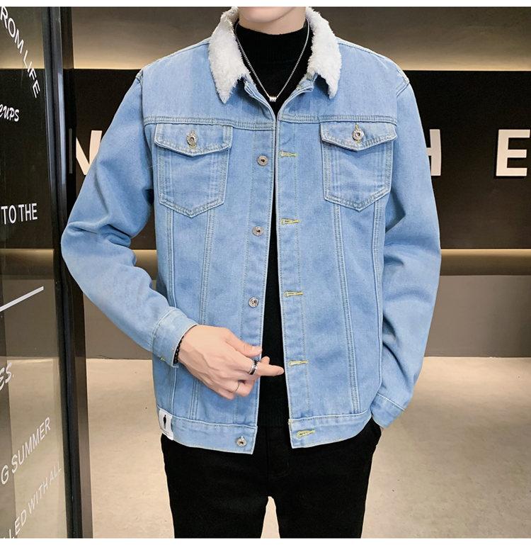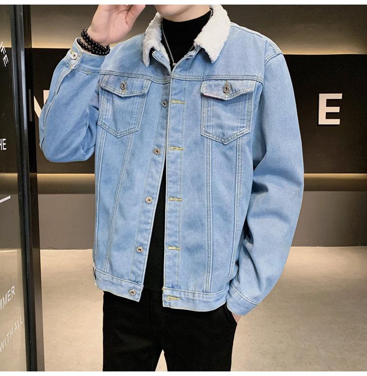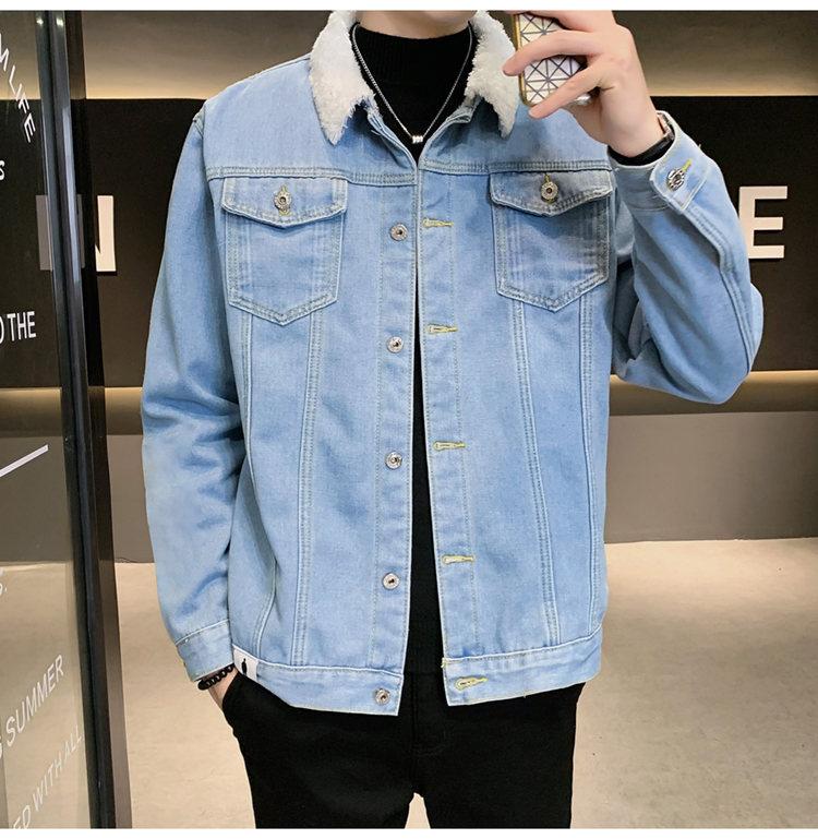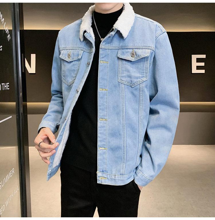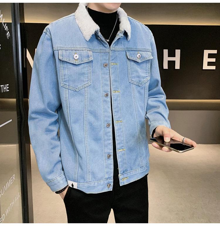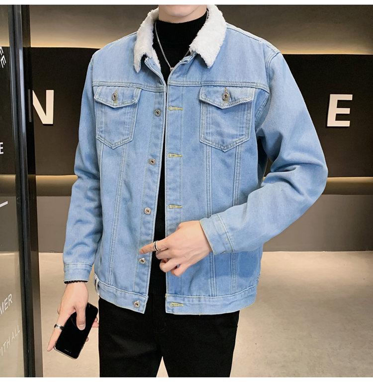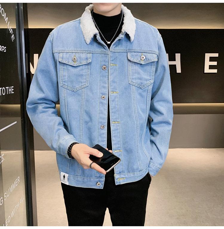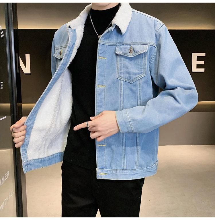 Em estoque outono e inverno New Denim jacket homens da moda solto homens cashmere fleece-forrado plus size casaco masculino Denim