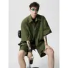 Traje de camisa de verano para hombre, nueva marca de moda, camisa de manga corta para hombre, pantalones cortos, traje deportivo informal holgado para hombre, de moda