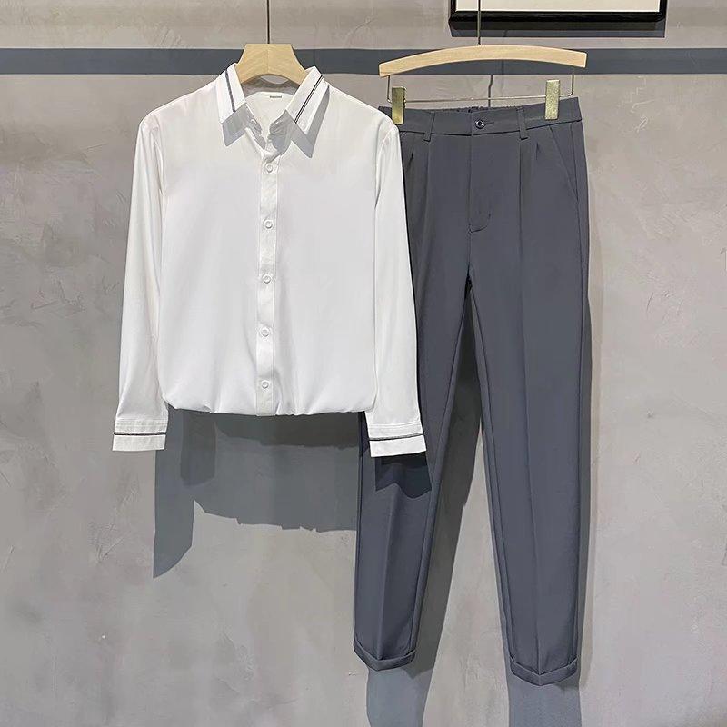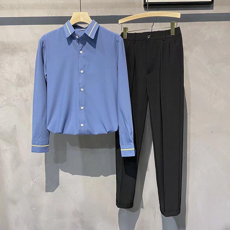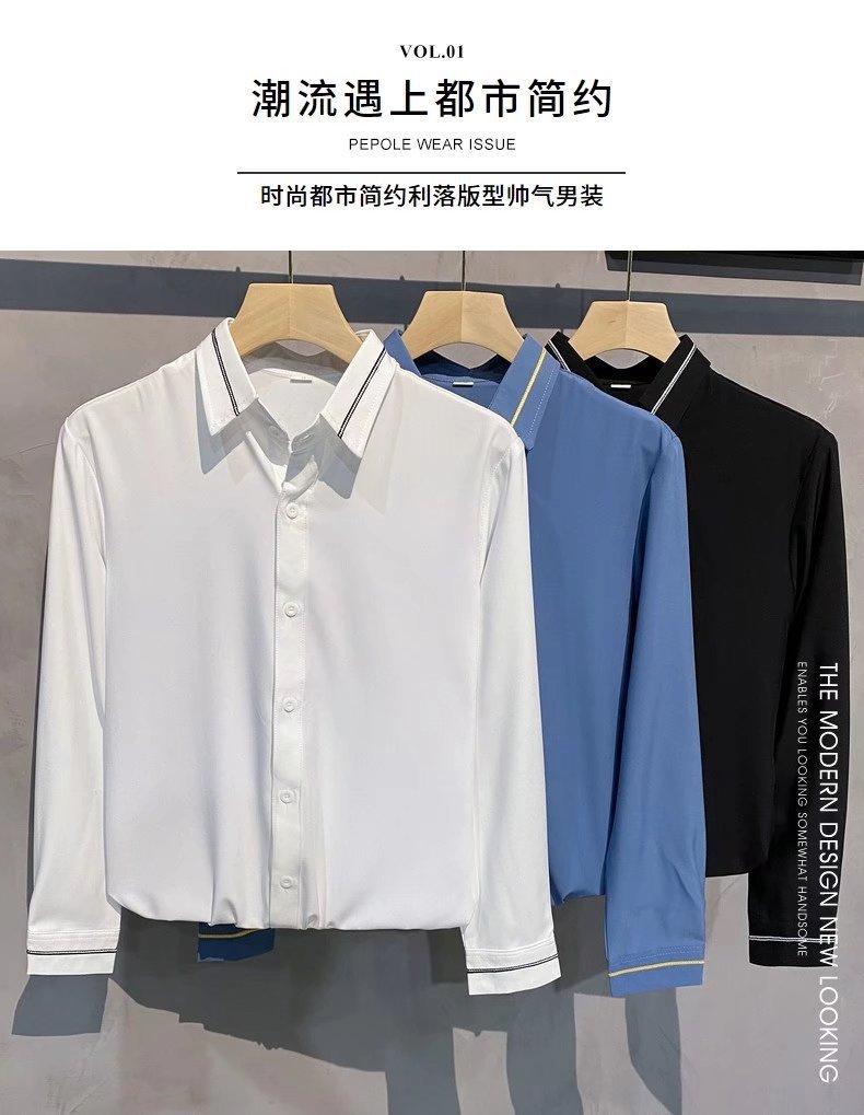 Camisa bordada Homens de manga comprida Primavera e Verão Masculino estilo coreano Slim-fit Thin Business Non-ironing Draped Shirt Trendy