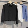 Camisa bordada masculina de manga longa primavera e verão estilo coreano fino negócios não-ferro drape camisa high-end tendência