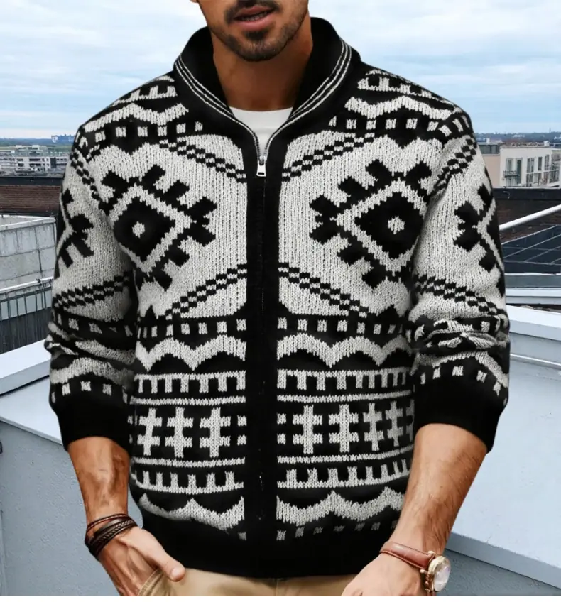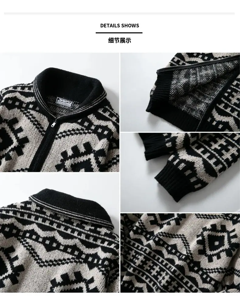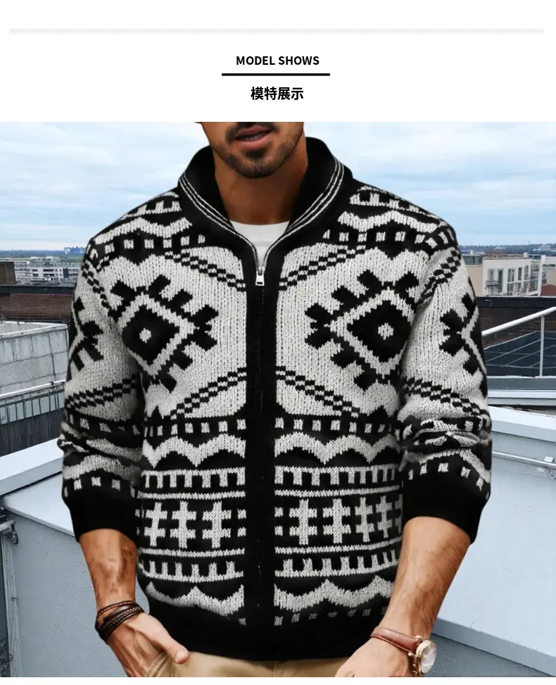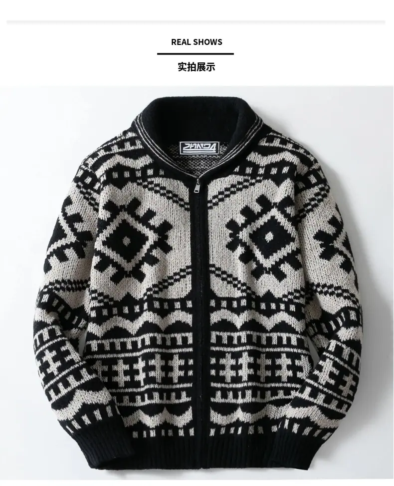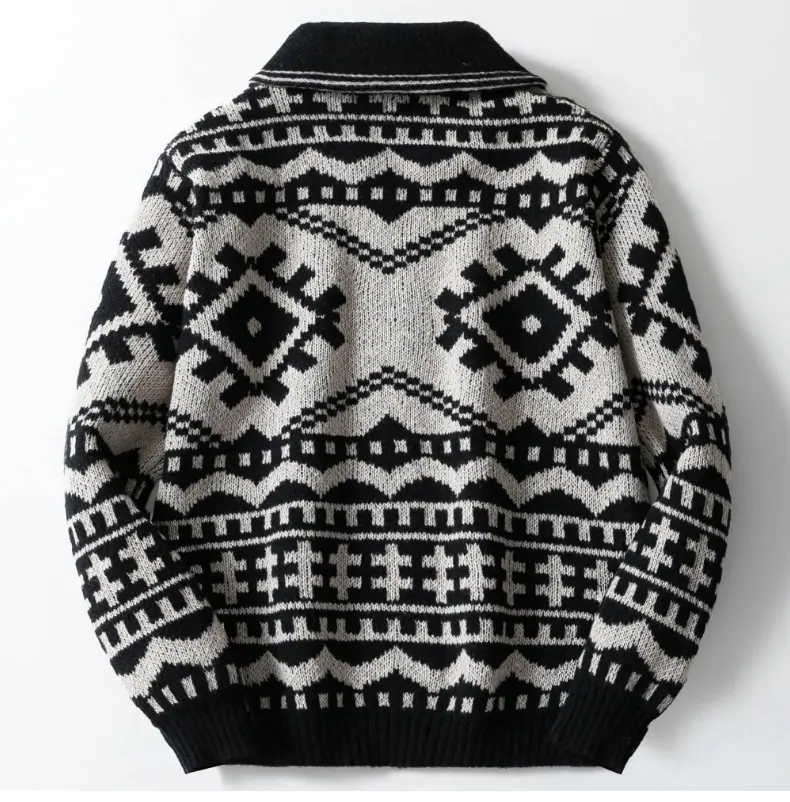 Casaco de malha jacquard masculino de outono e inverno da Amazon para comércio exterior, jaqueta e suéter de manga comprida com lapela SY0020