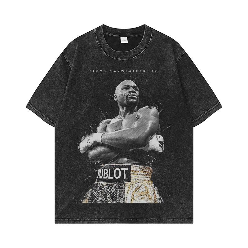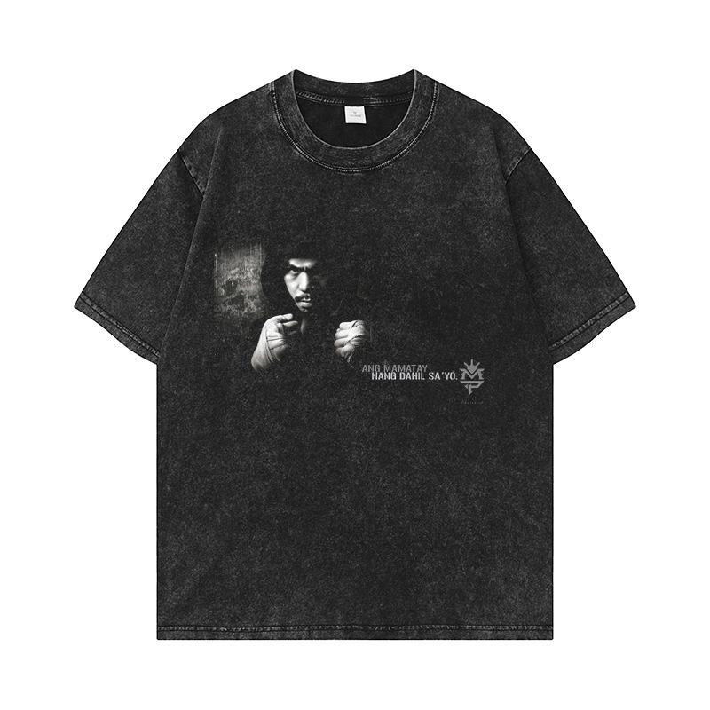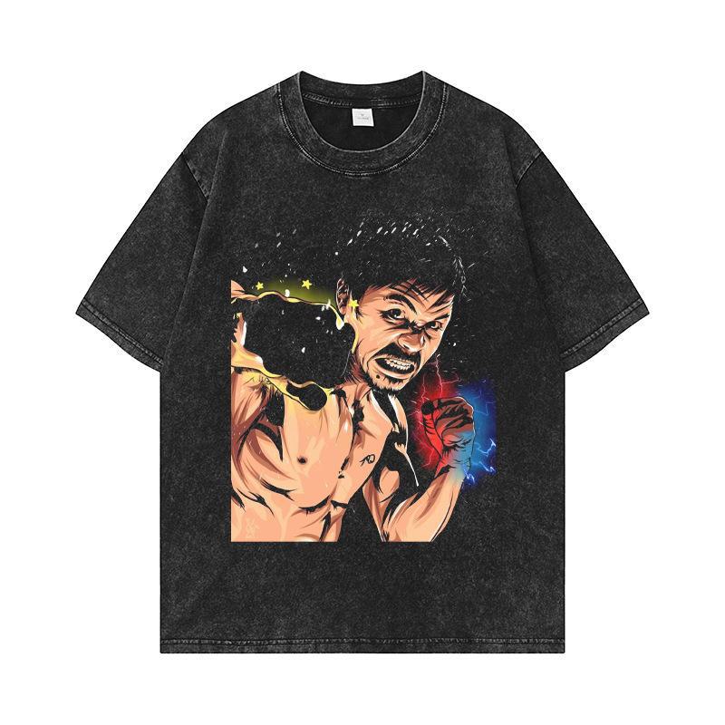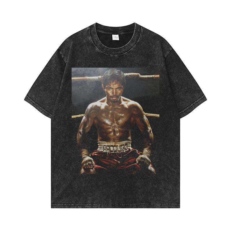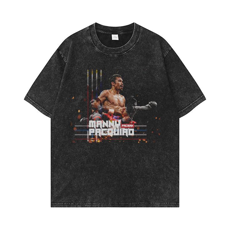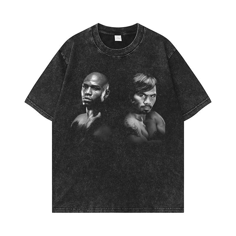 Pacquiao estampado lavado vintage distressed T-shirt verão casual all-match marca de moda americana high-end injeção direta digital high-end