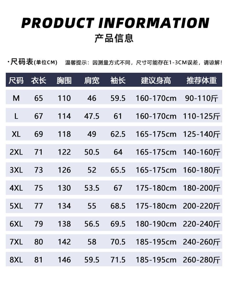 M, L, XL, 2XL, 3XL, 4XL, 5XL, 6XL, 7XL, 8XL