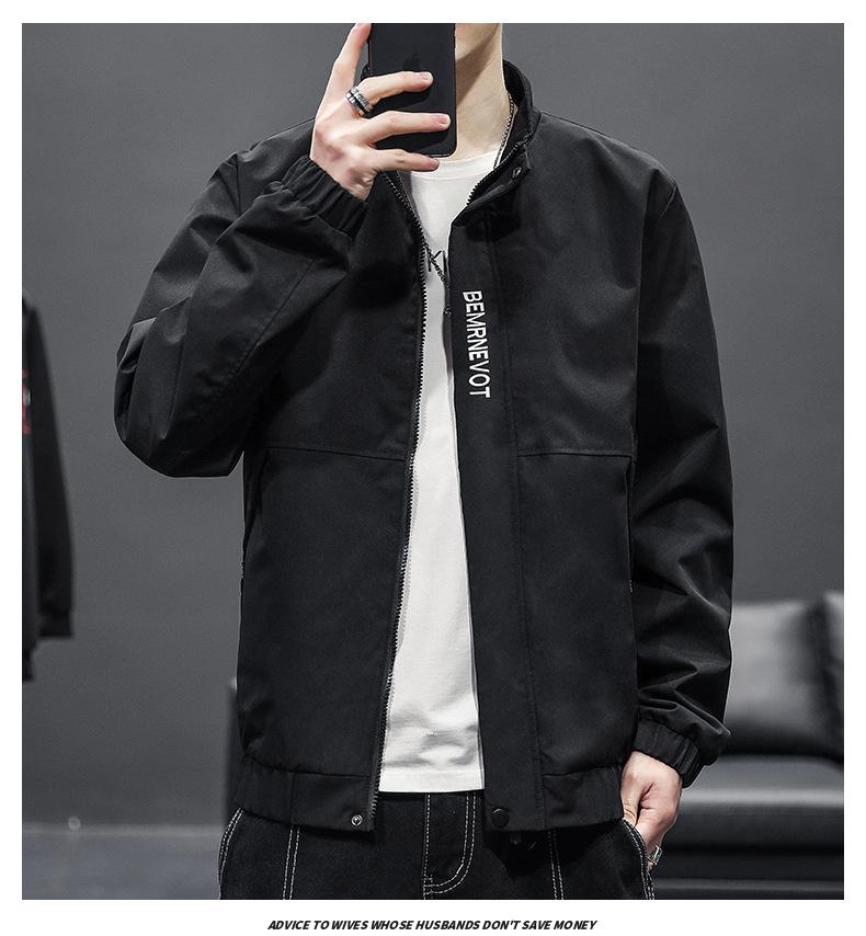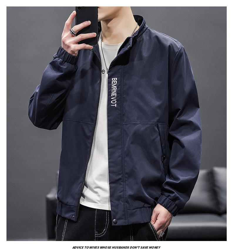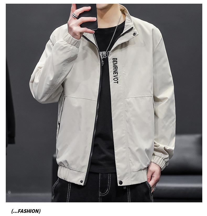 Jaqueta Casual Nova Masculina de Colarinho para Primavera e Outono 2021 Ins Jaqueta Estudantil Adolescente com Letras Bordadas da Moda