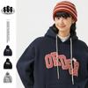 BUILTTOLAST Americano estilo campus retrô solto forrado de lã suéter com capuz masculino e feminino casaco de inverno V26