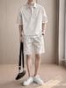 Terno masculino de duas peças, cor sólida, manga curta, estilo coreano, casual, solto, moda casual, camisa polo