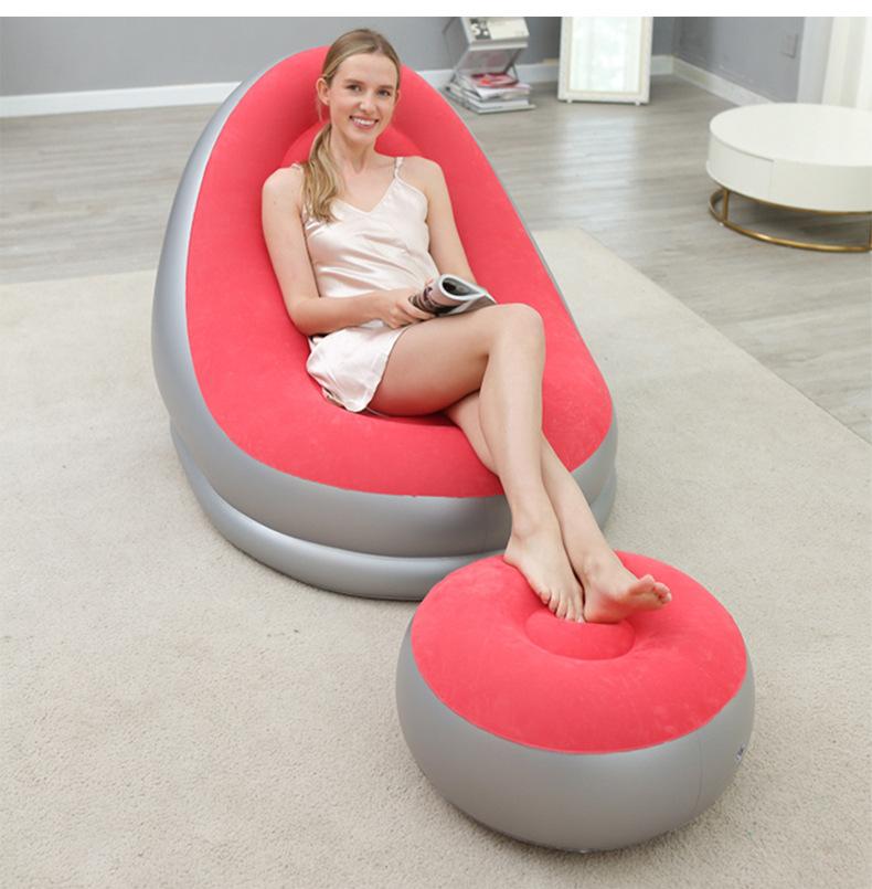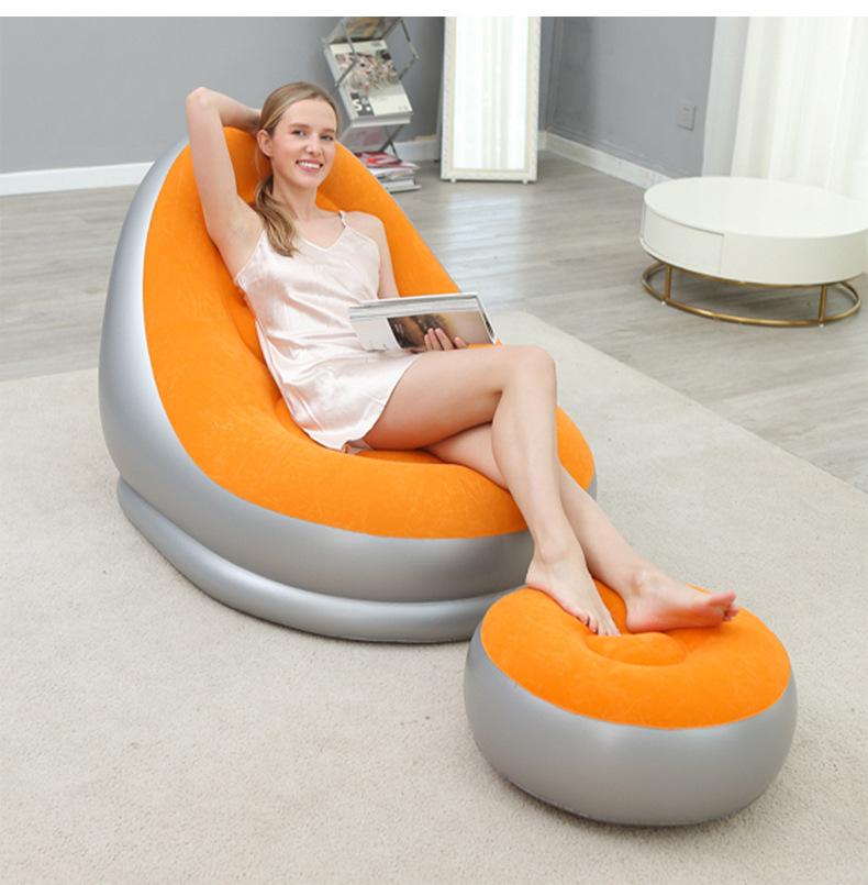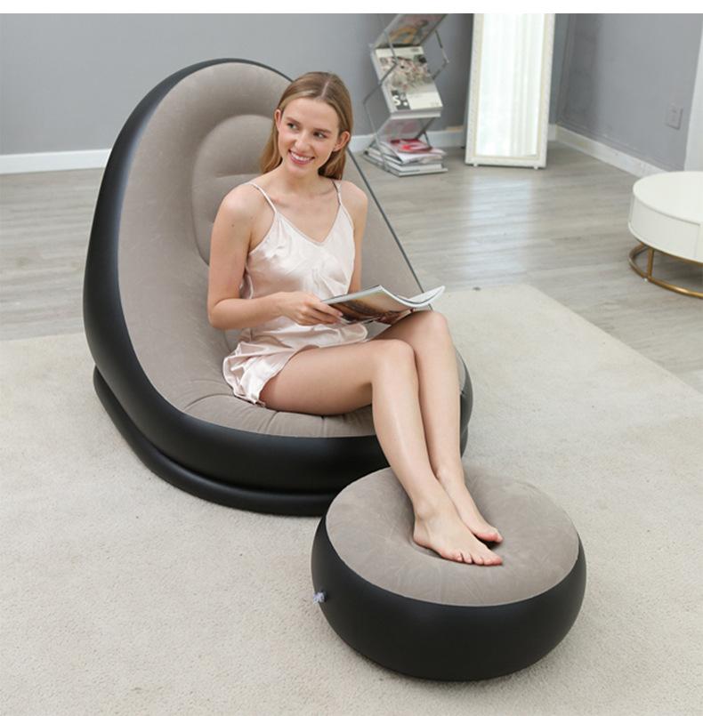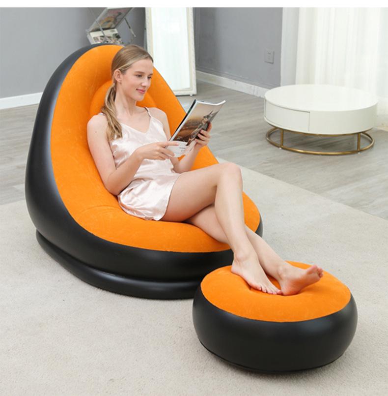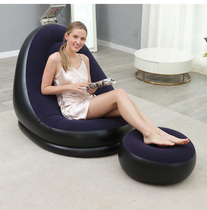 Sofá inflável preguiçoso engrossado Sofá reclinável dobrável ao ar livre com combinação de pedal Sofá preguiçoso Sofá de flocagem