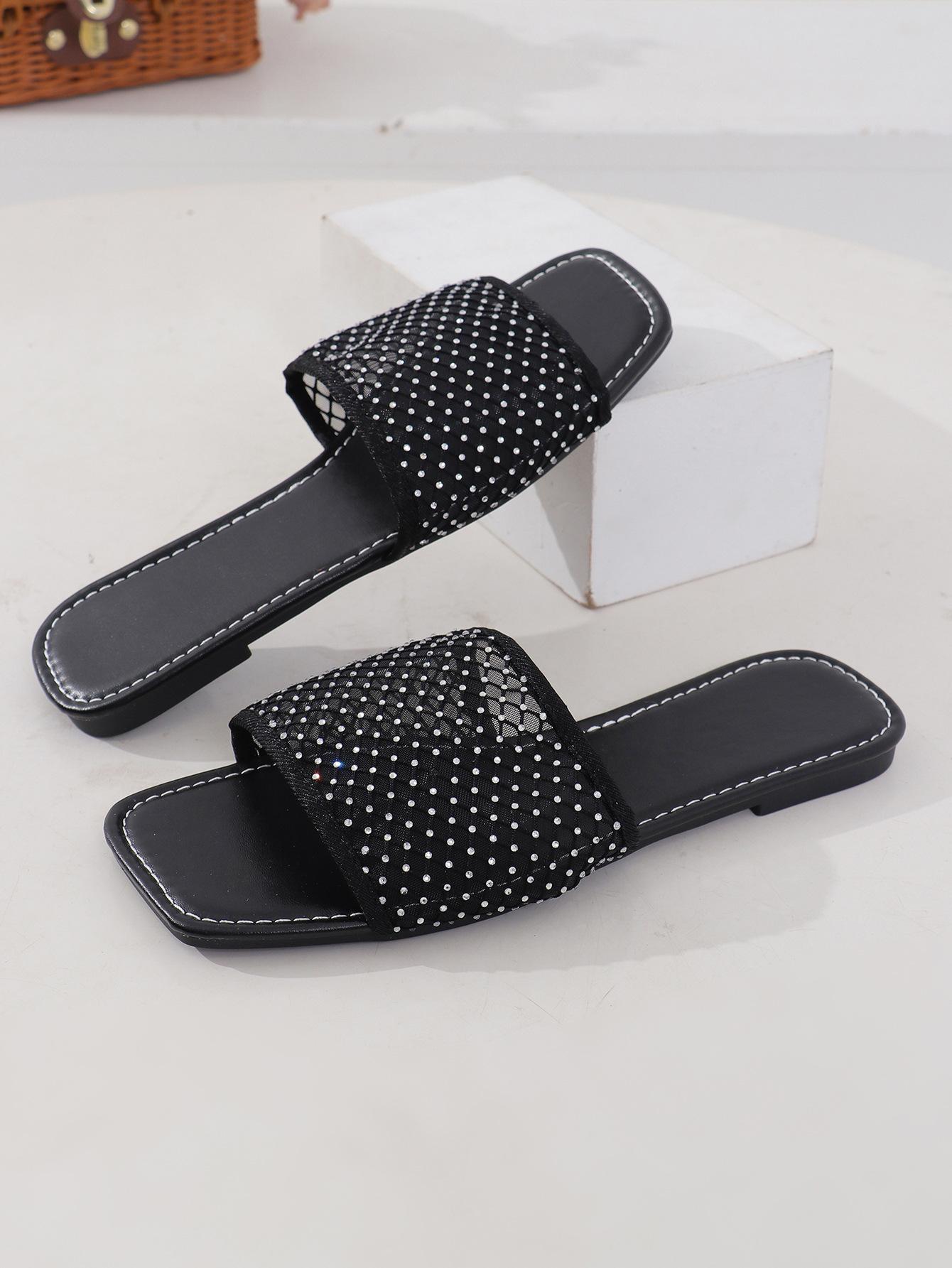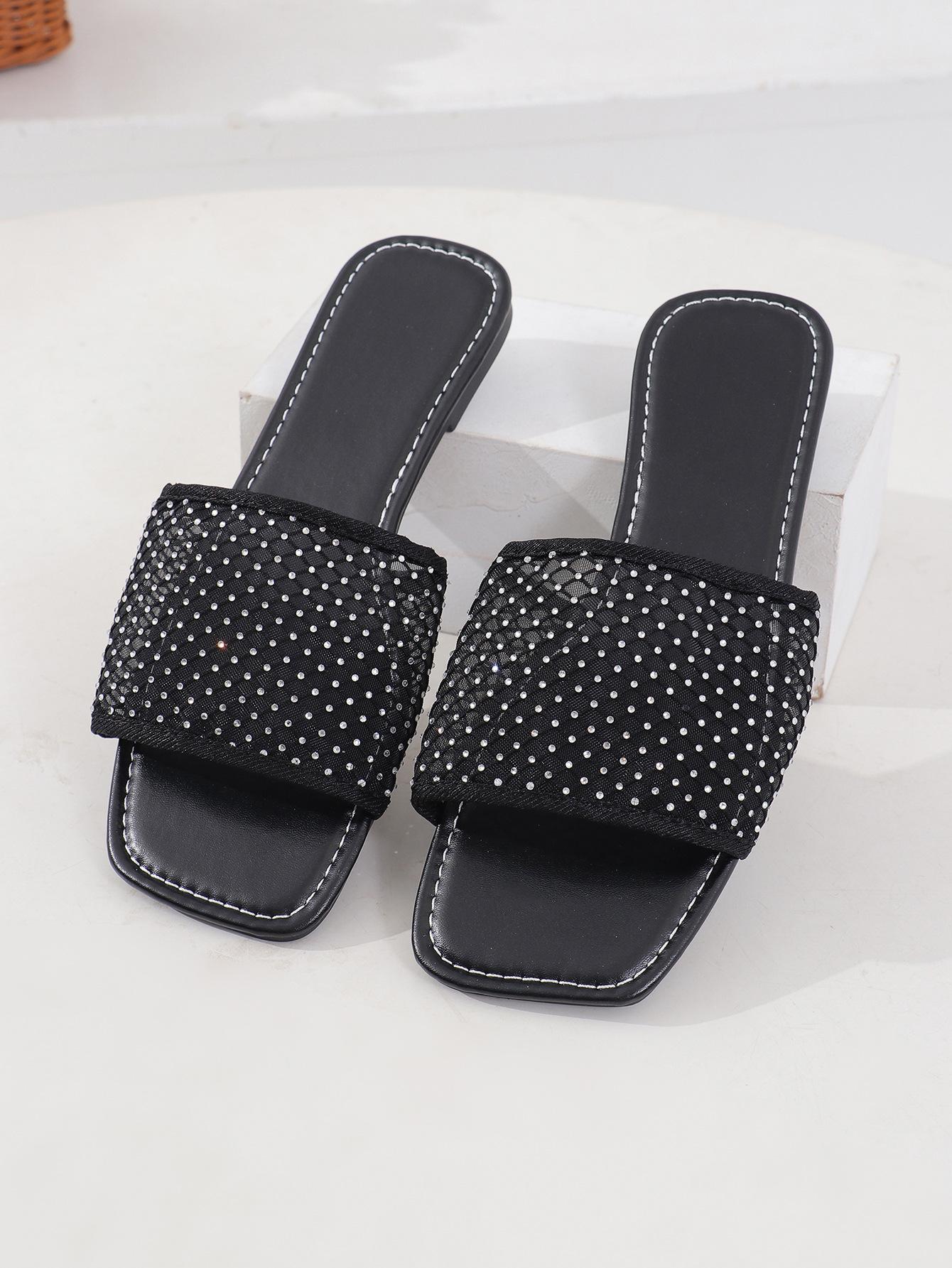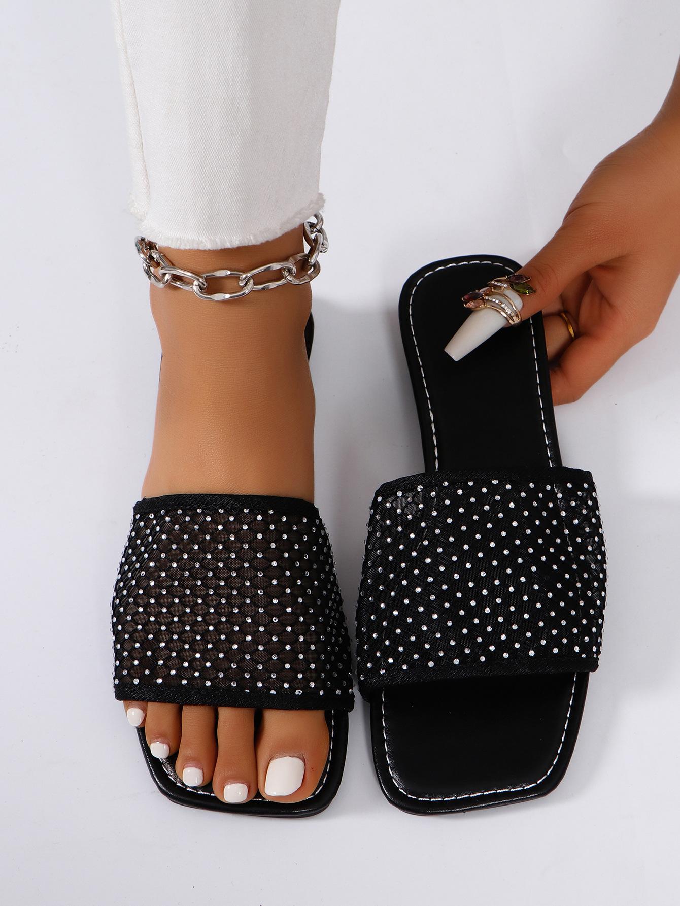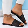 Comércio exterior plus size chinelos casuais net famoso strass plana casual sapatos femininos 2024 verão nova malha chinelos de praia