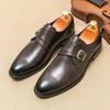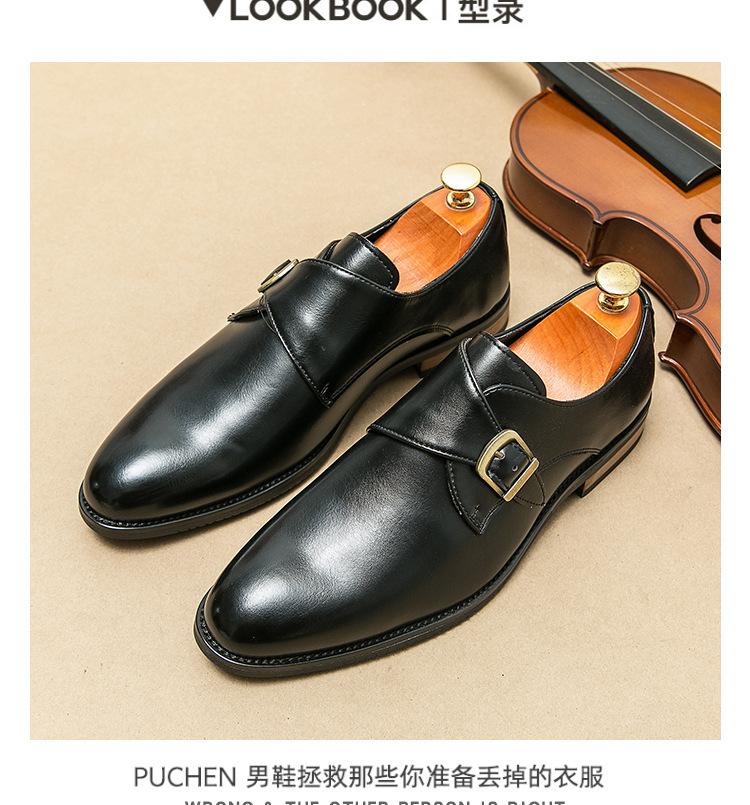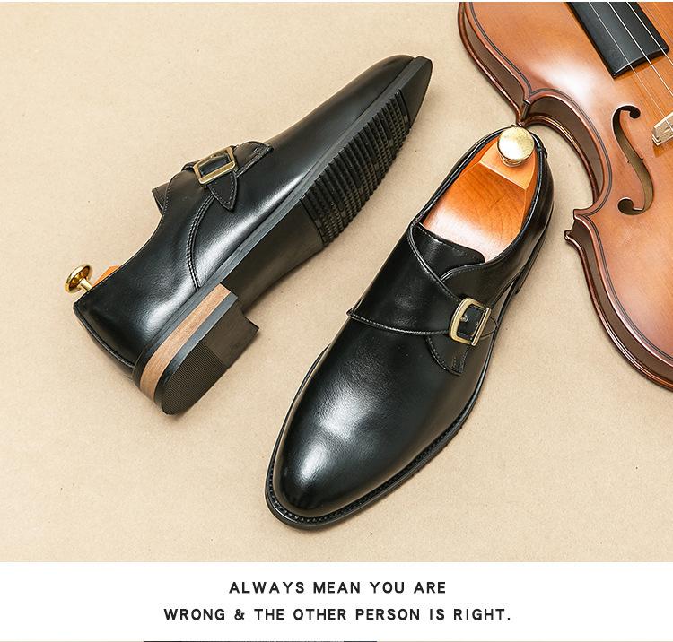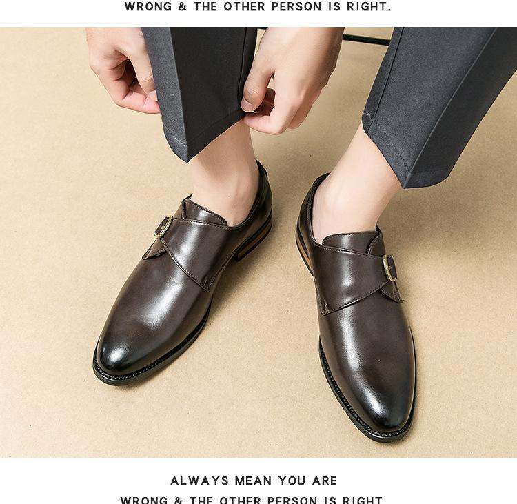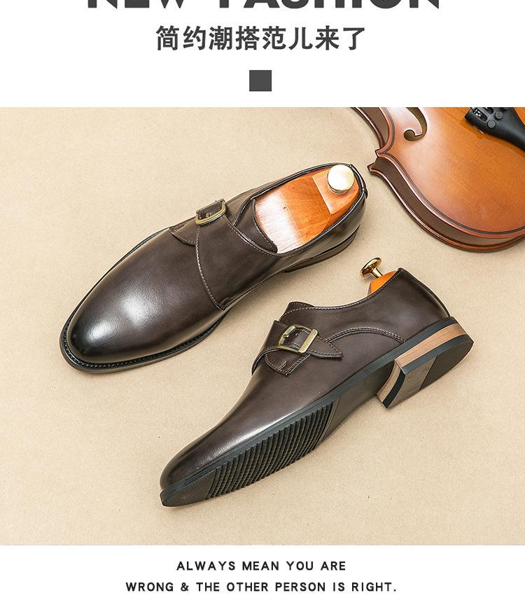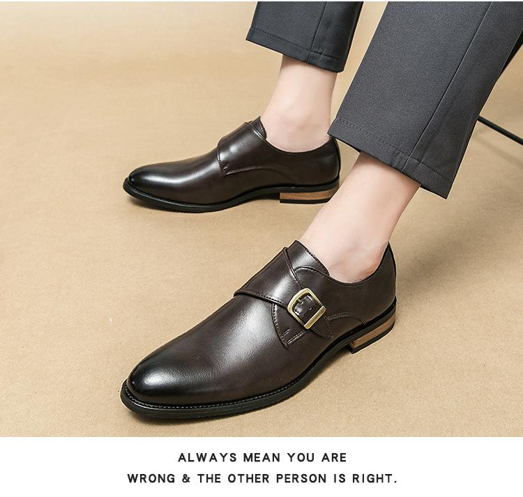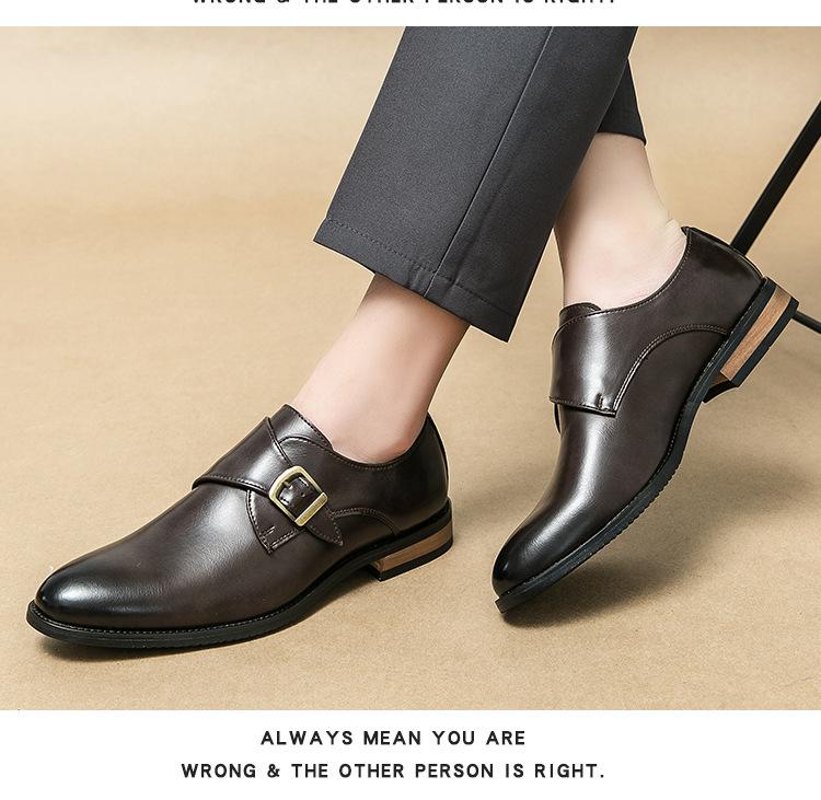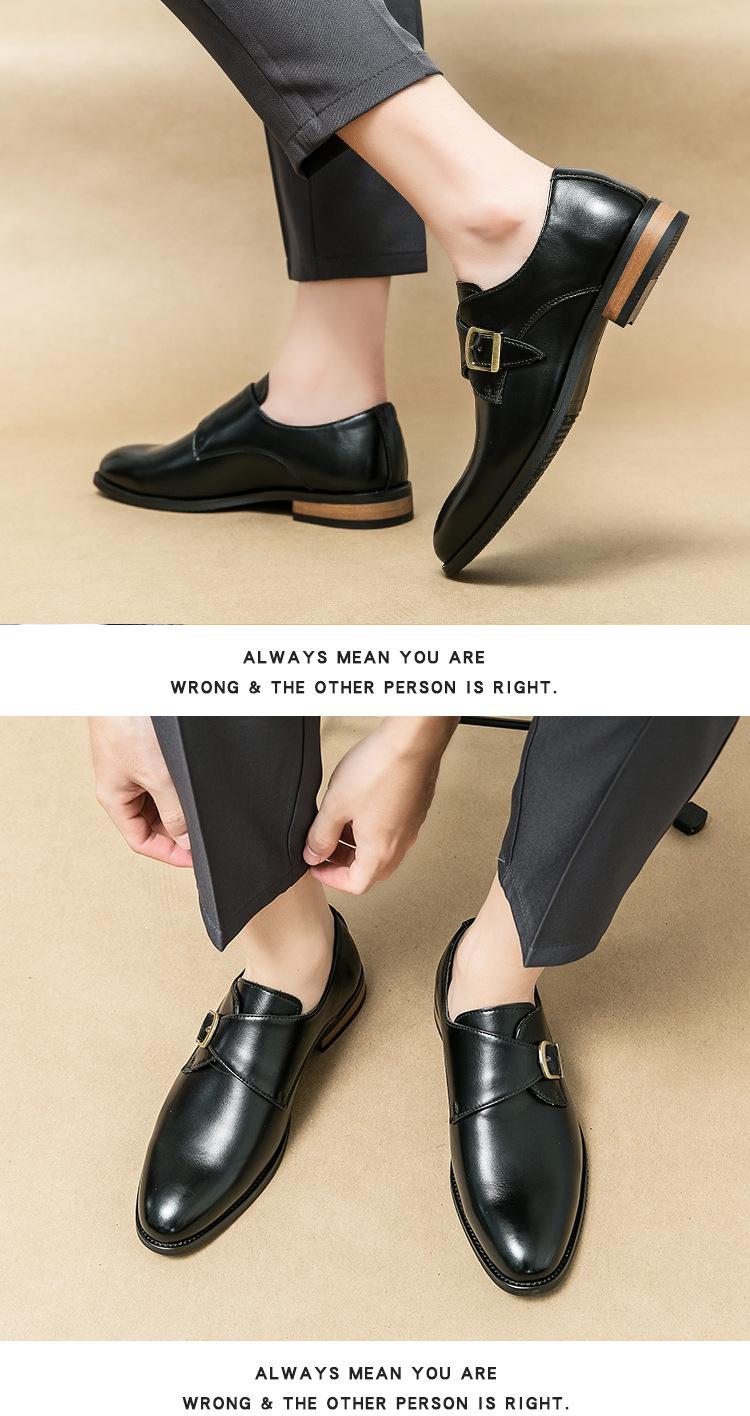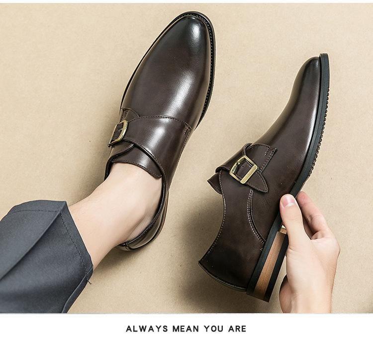 Sapatos de Couro Quatro Estações Masculino Tendência Britânica Negócios Formal Casual Respirável Aumento de Altura Slip-On Fivela Sapatos Formais de Negócios