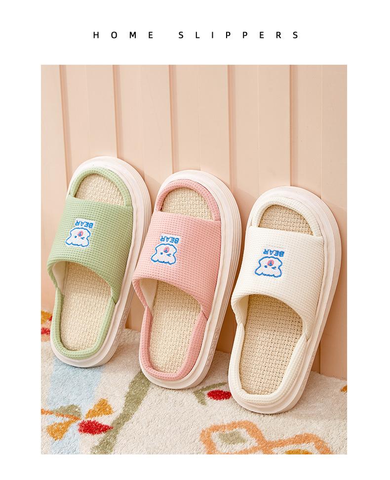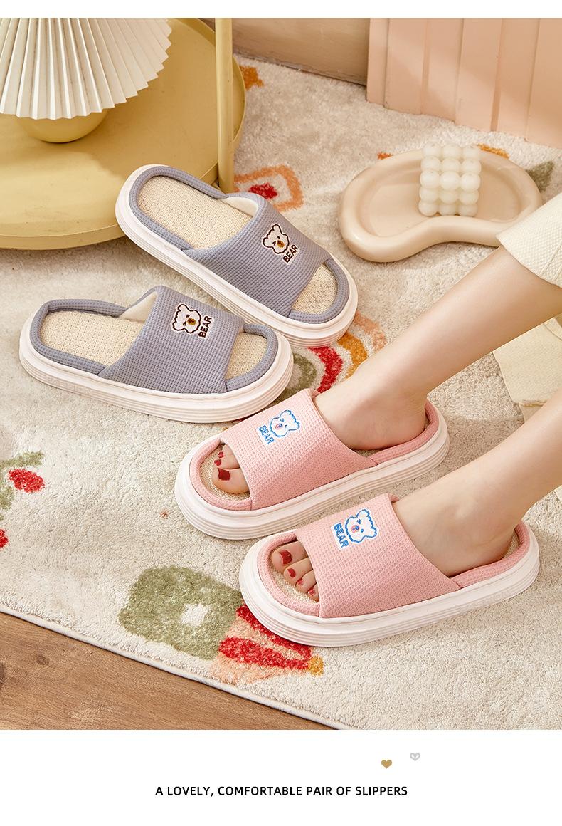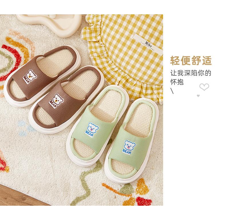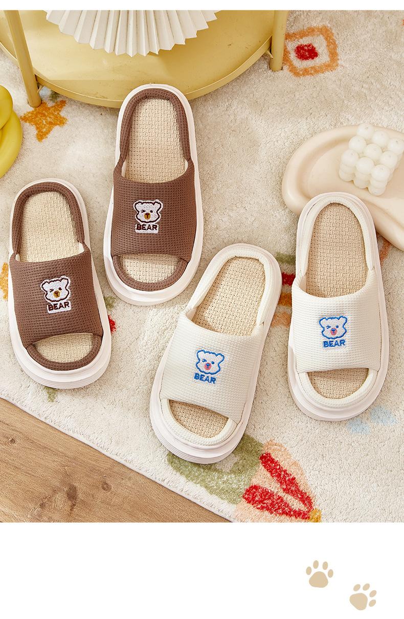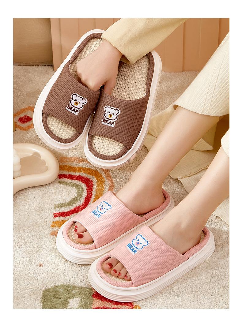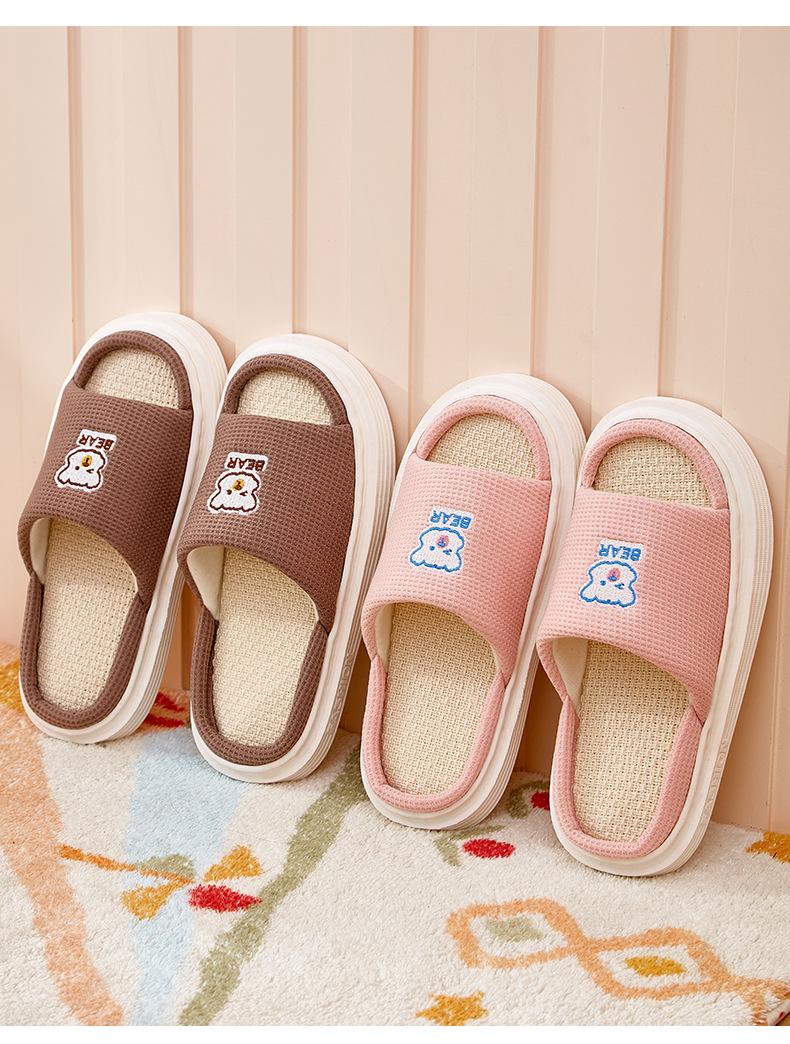 Chinelos de linho com sola grossa para homens e mulheres com urso de desenho animado casal em casa interior antiderrapante mudo piso de linho de algodão chinelos Four Seasons