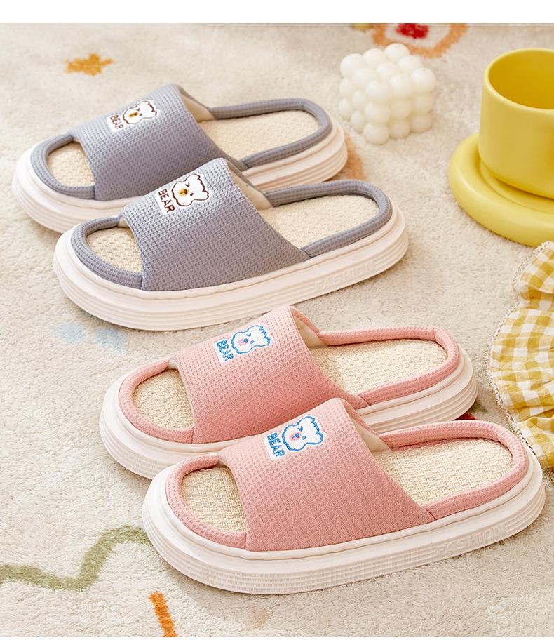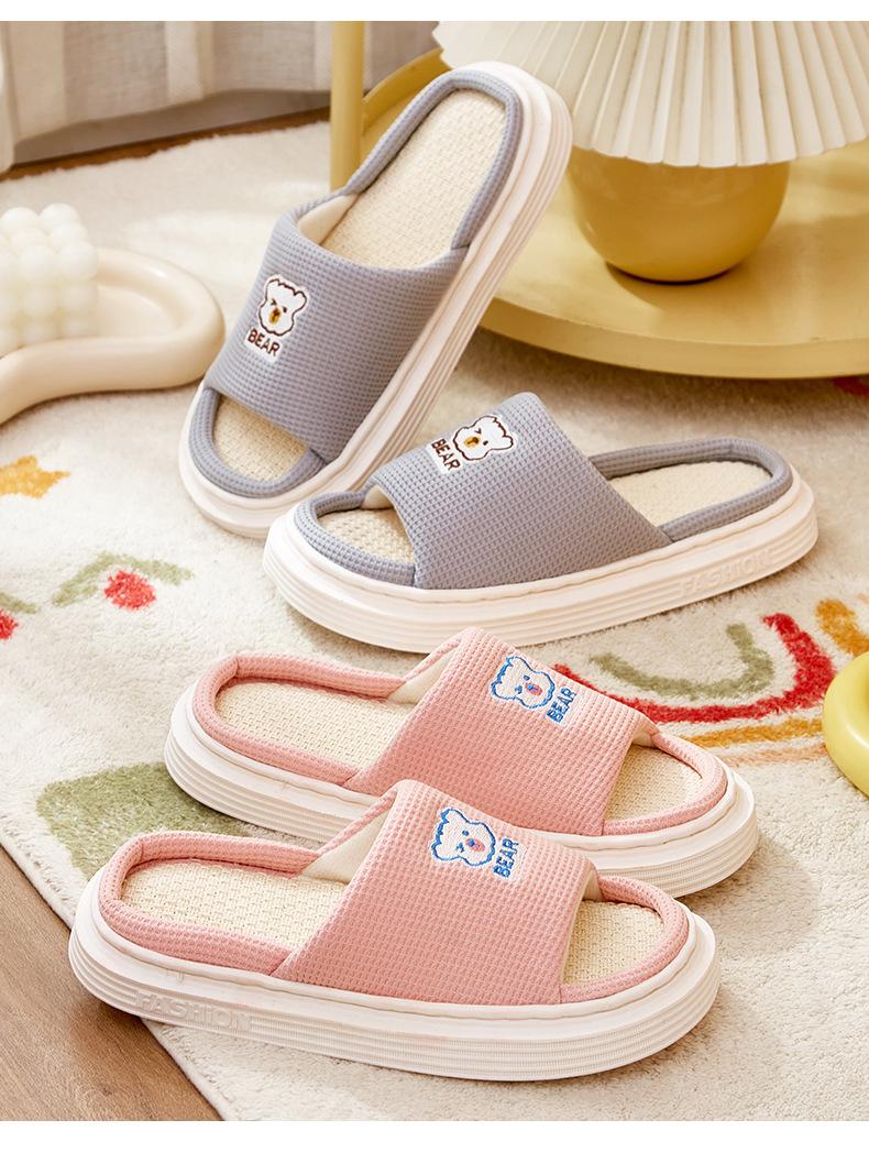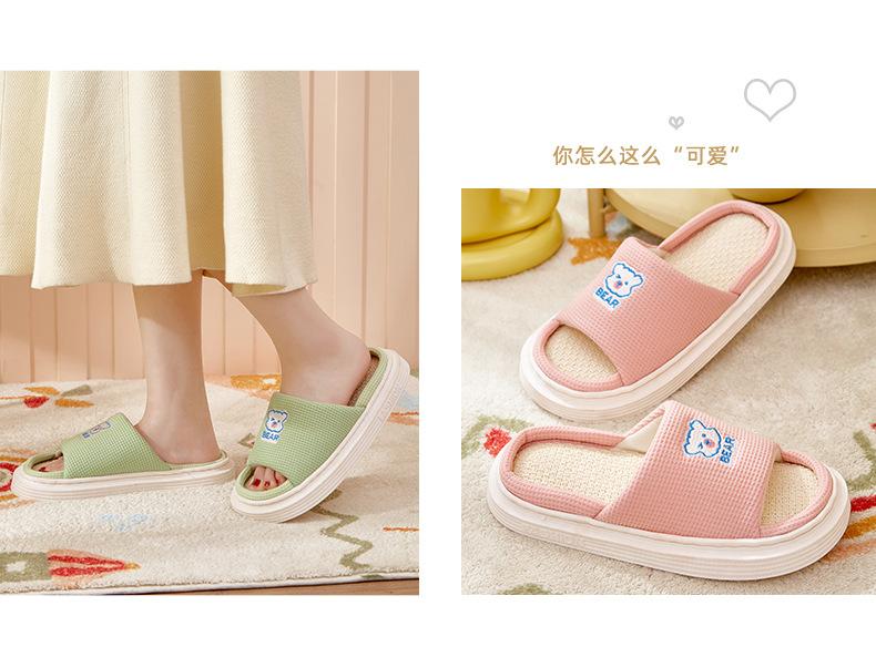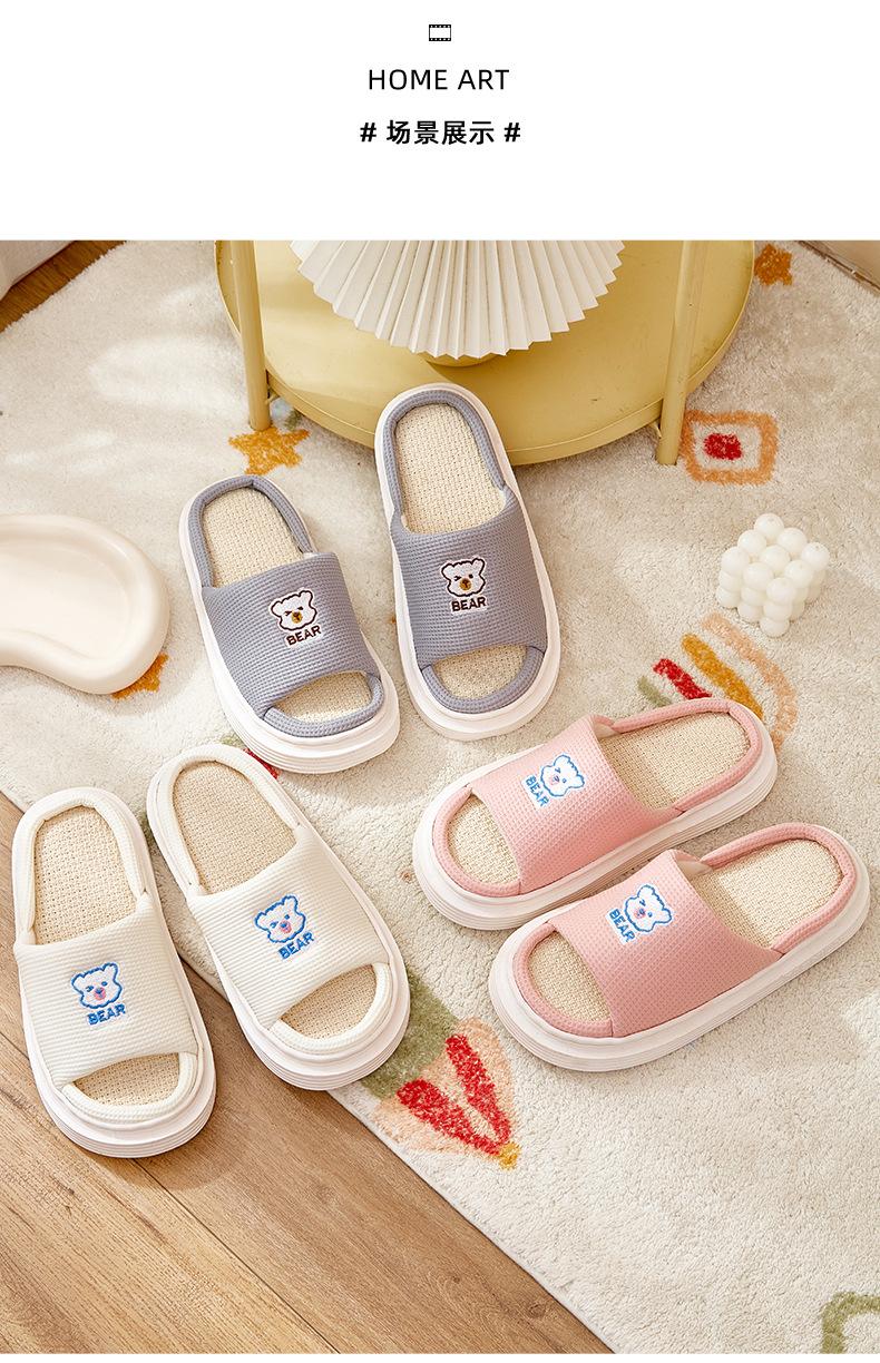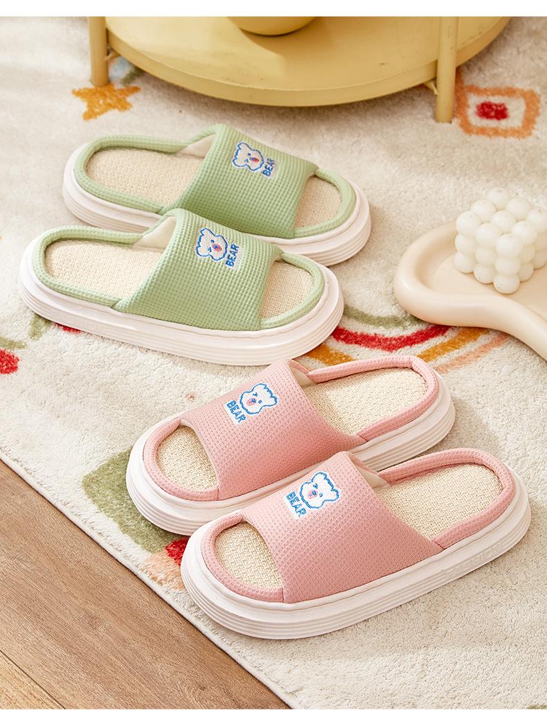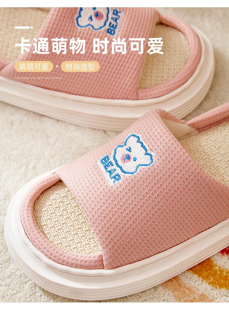 Chinelos de linho com sola grossa para homens e mulheres com urso de desenho animado casal em casa interior antiderrapante mudo piso de linho de algodão chinelos Four Seasons