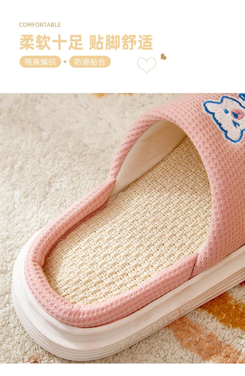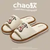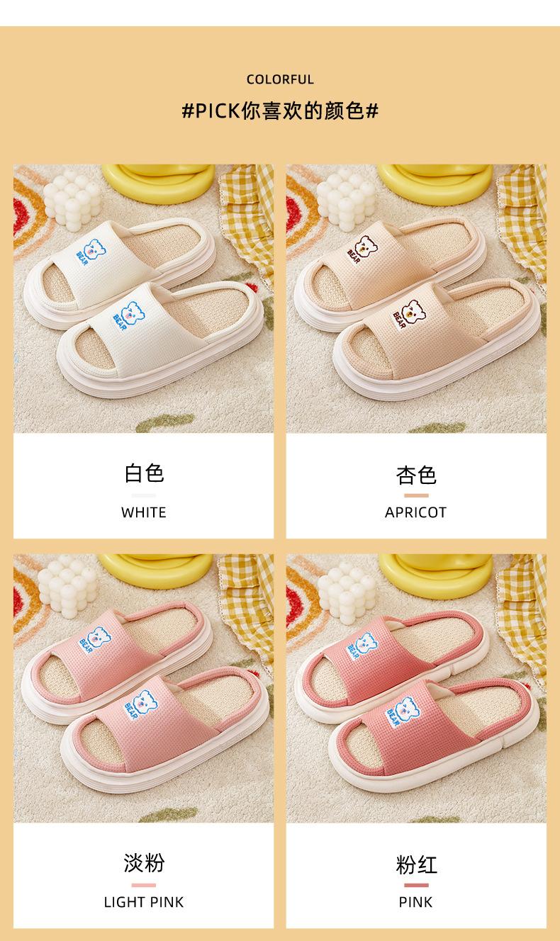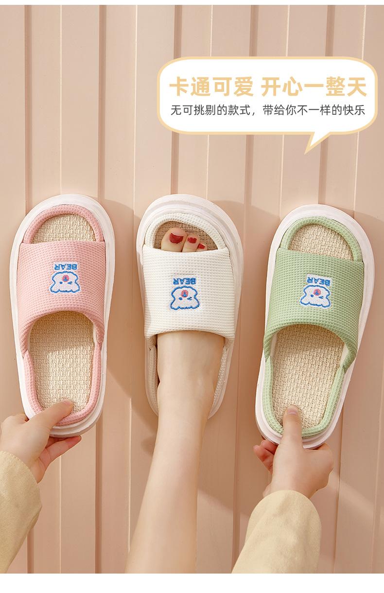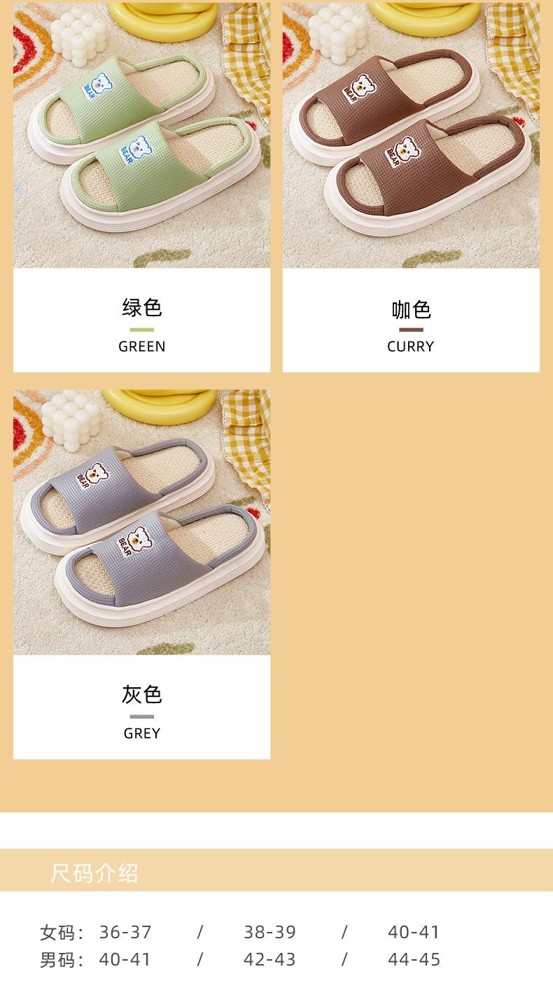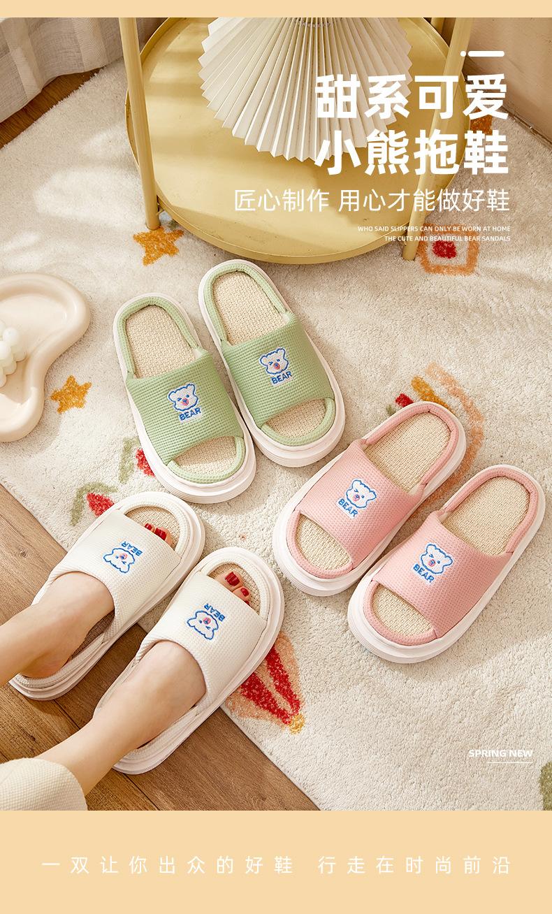 Chinelos de linho com sola grossa para homens e mulheres com urso de desenho animado casal em casa interior antiderrapante mudo piso de linho de algodão chinelos Four Seasons